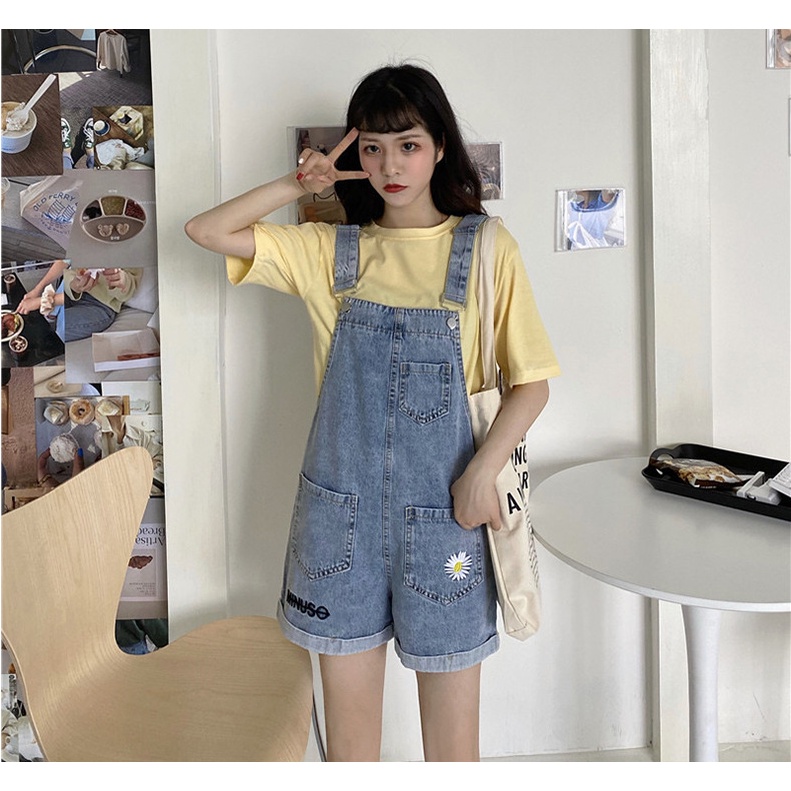 Jumpsuit Motif Bunga & Tulisan Jumpsuit longgar Jumpsuit Wanita Fashion Korean Style Versi Korea Jumpsuit Cool