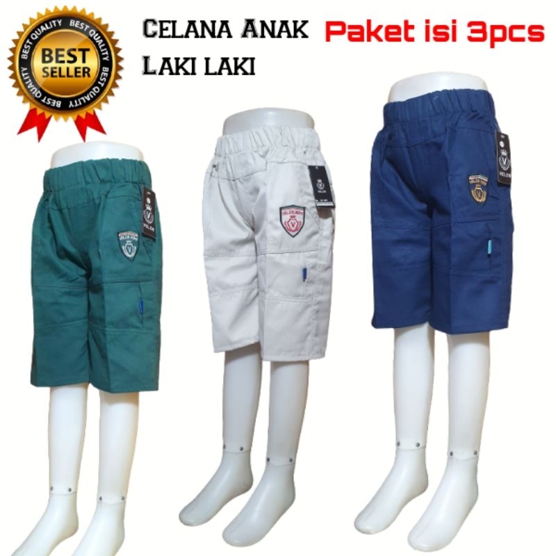 paket isi 3pcs celana anak laki usia 1 2 3 4 5 6 7 8 9 10 11 12 tahun cargo pendek cowok keren