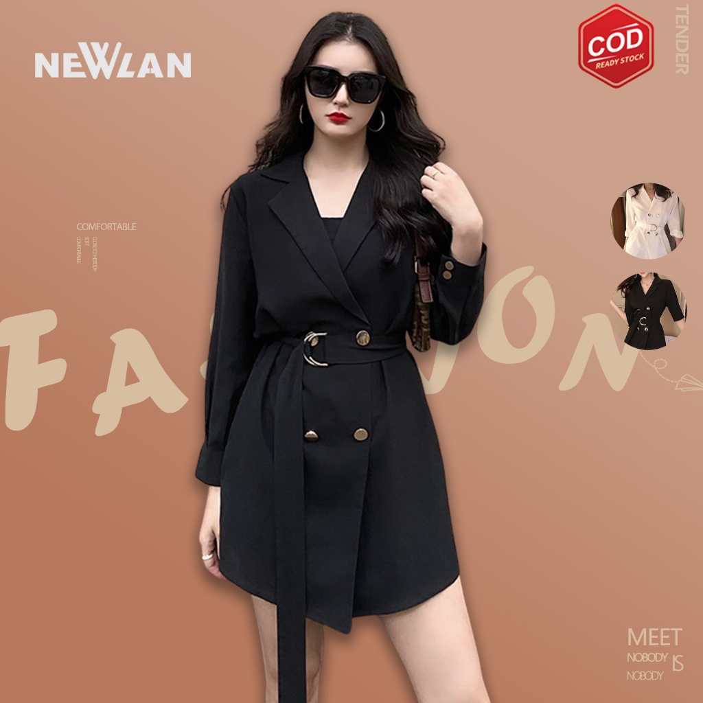 Newlan WT017 musim gugur baru jas 2023 mid-length double-breasted kerah longgar atas pakaian wanita trend Coat wani