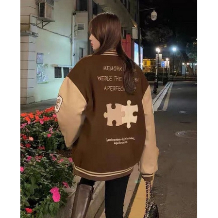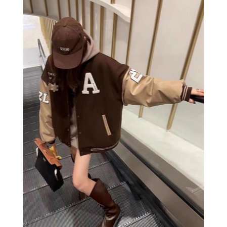Jaket Baseball Wanita Korean Style A CHOOK Oversize Size M.L.XL | Jaket Varsity Baseball Wanita Oversize | Jaket Ko