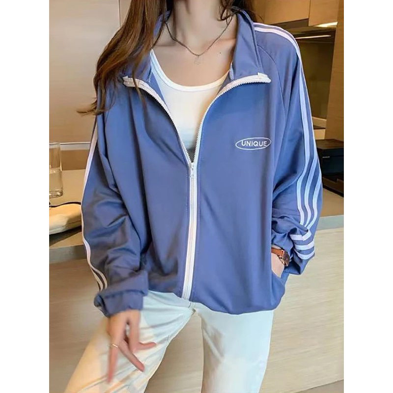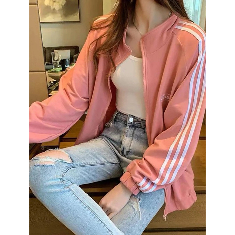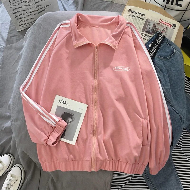 UNIQUE JAKET WANITA LIST STRIPE JAKET ZIPPER KOREAN STYLE