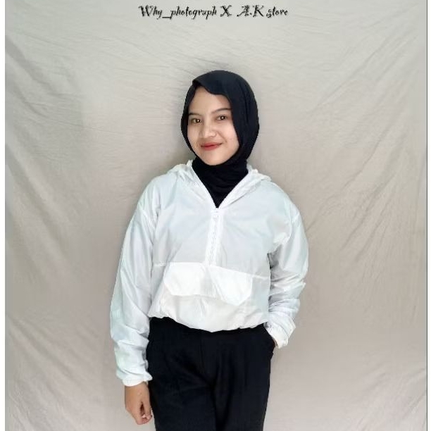 Jaket Olahraga Crop Wanita Parasut Dengan Saku Depan/Srt