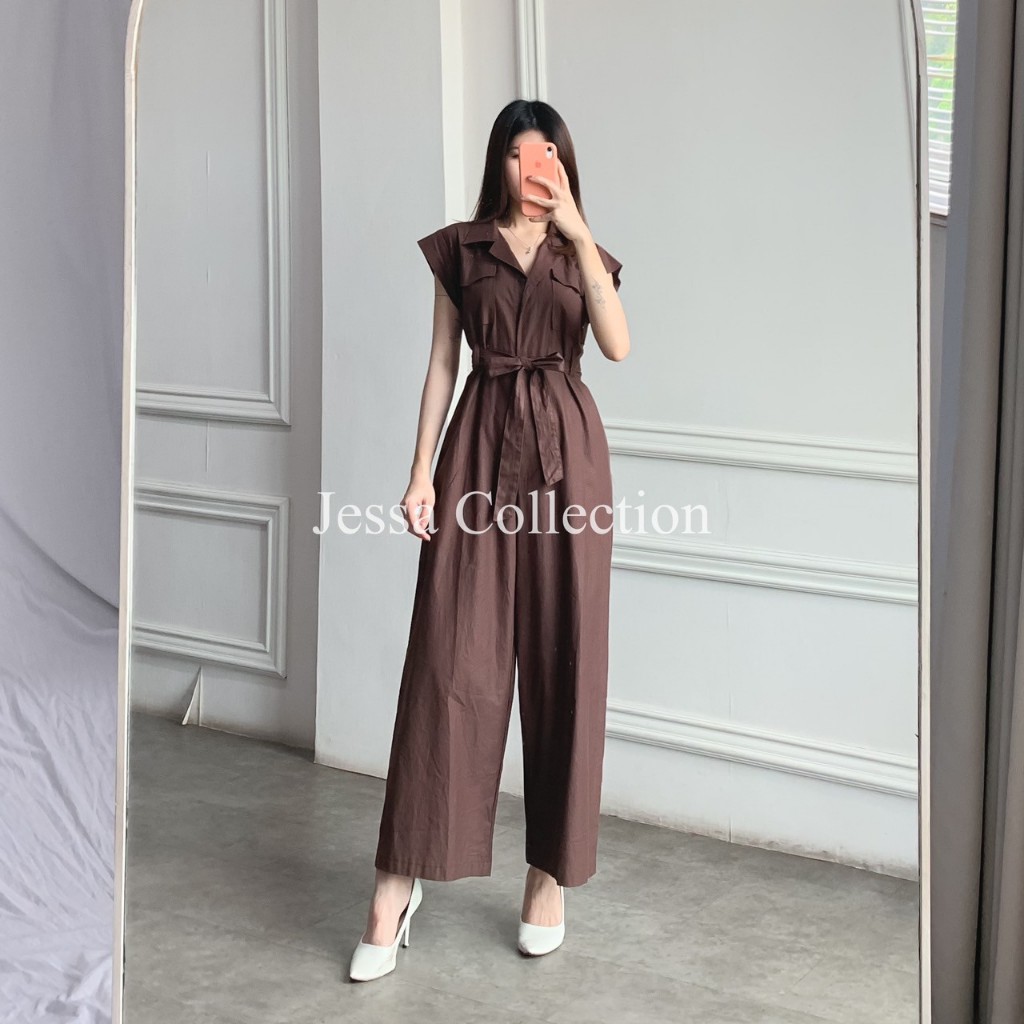 Premium Odysee Long Jumpsuit TH 992 1071 COTTON Overall Wanita cket Terusan Celana Panjang Tangan Pendek Motif