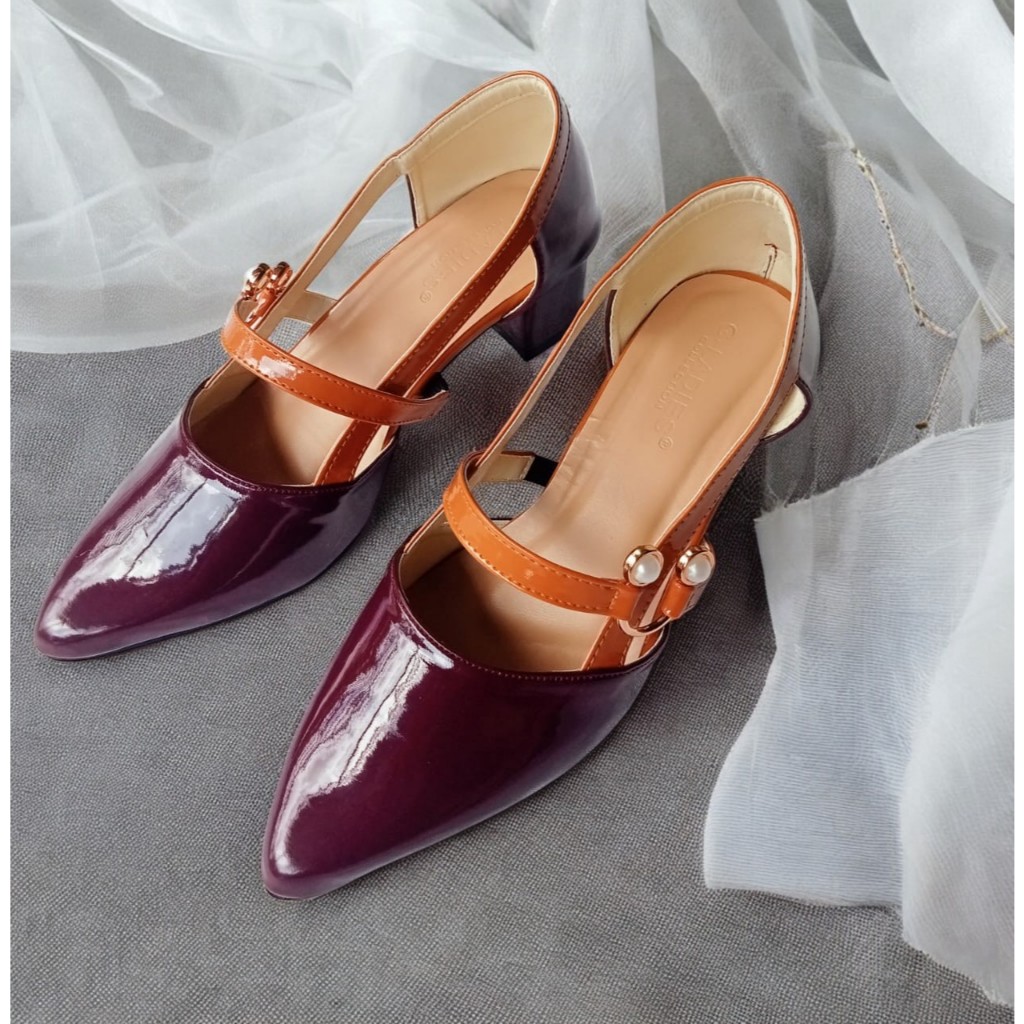 Sepatu FanT0Pel Wanita Heels Tali Slop Belakang 5cm AL 04