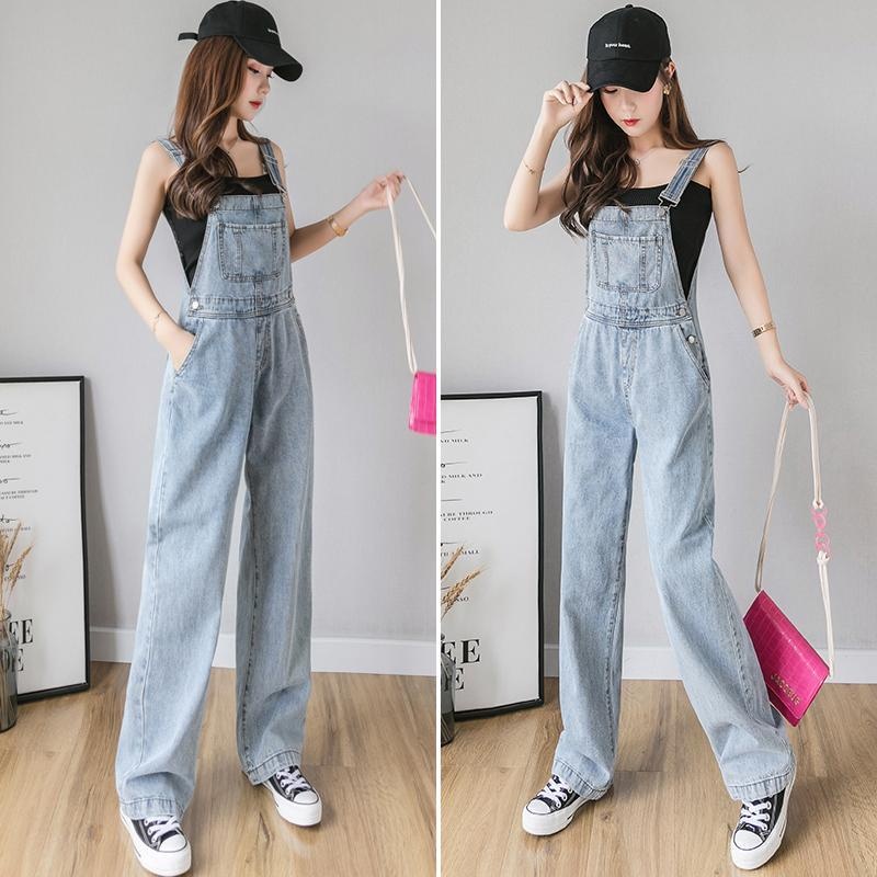 MURAH LEBAY - Overall denim panjang Jumpsuit Celana panjang Jumpsuit Wanita Fashion Simple lucu jumpsuit longgar ve