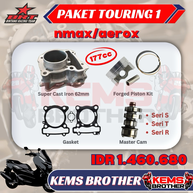 Blok Bore Up 177cc Casting Iron Gen 2 BRT - NMAX, Aerox, Lexy - Paket Touring 1 Piston 62mm, Nokenas, Gasket