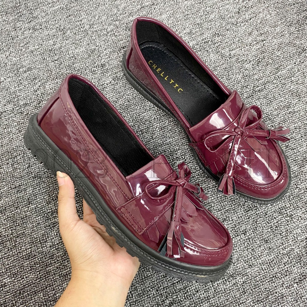 GALAXY Sepatu Loafers Wanita PIta Terbaru|Sepatu Flat Docmart Glosy