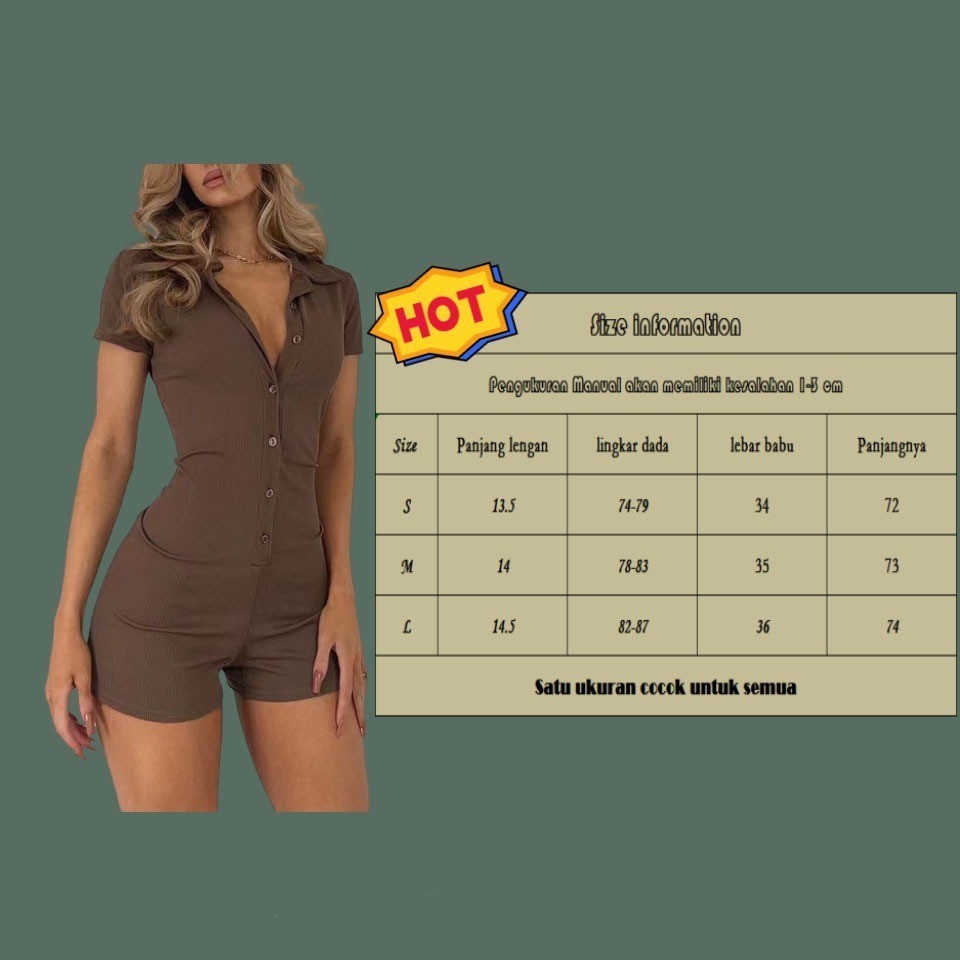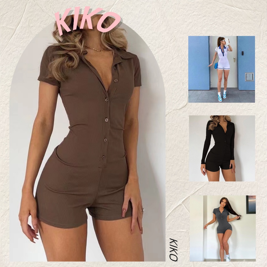 KIKOofficial Rapcopter Dasar Spice Girl Kaos Jumpsuit Wanita lo Neck Buckle Slim Fit Naked Legging
