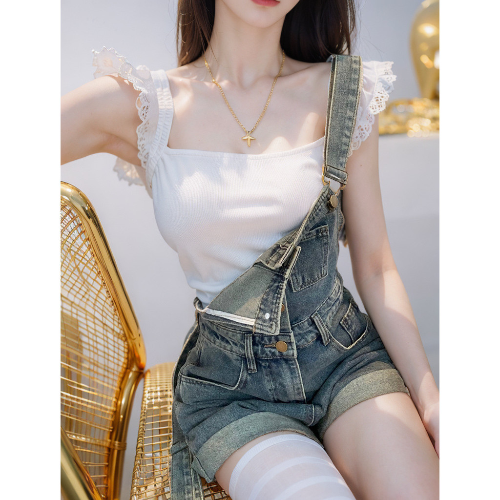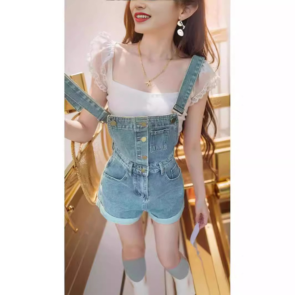 Overall Denim Wanita Musim Panas 2024 Celana Pendek Tubuh Baru Jumpsuits
