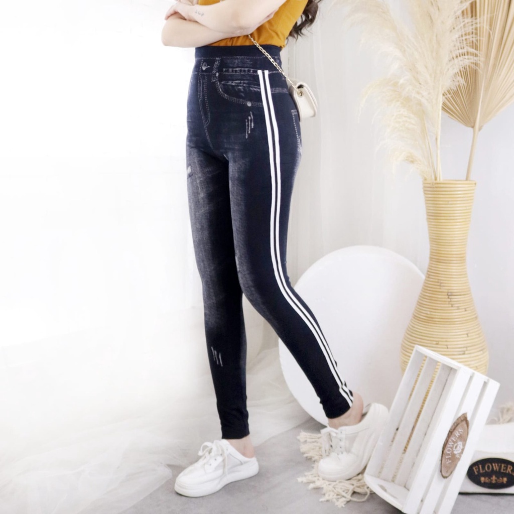 LEGING JEANS HIGHWAIST LIS 2 PUTIH / LEGGING FASHION WANITA / LEJING DENIM IMRT
