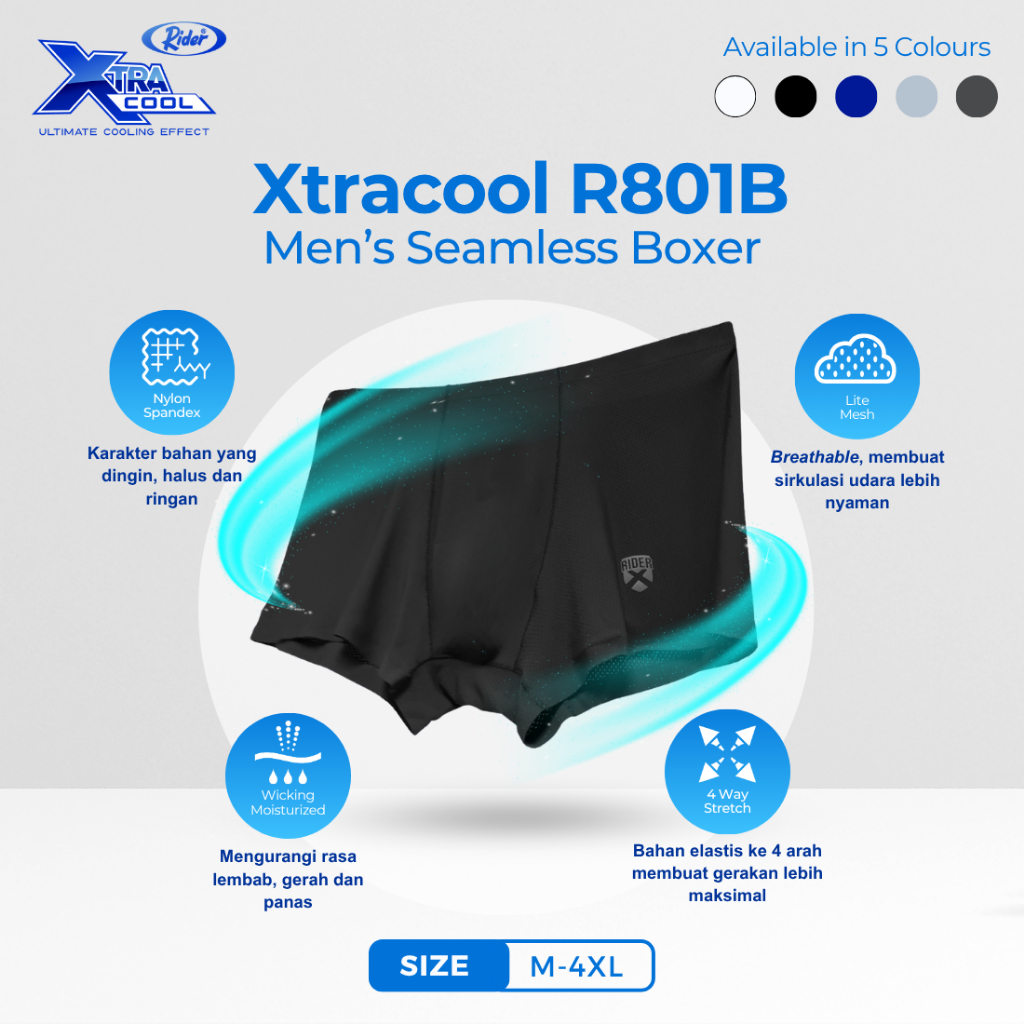 Rider Xtracool Boxer Brief Nylon Mesh Spandex - Boxer Pria R801B Warna Hitam isi 1 Pcs