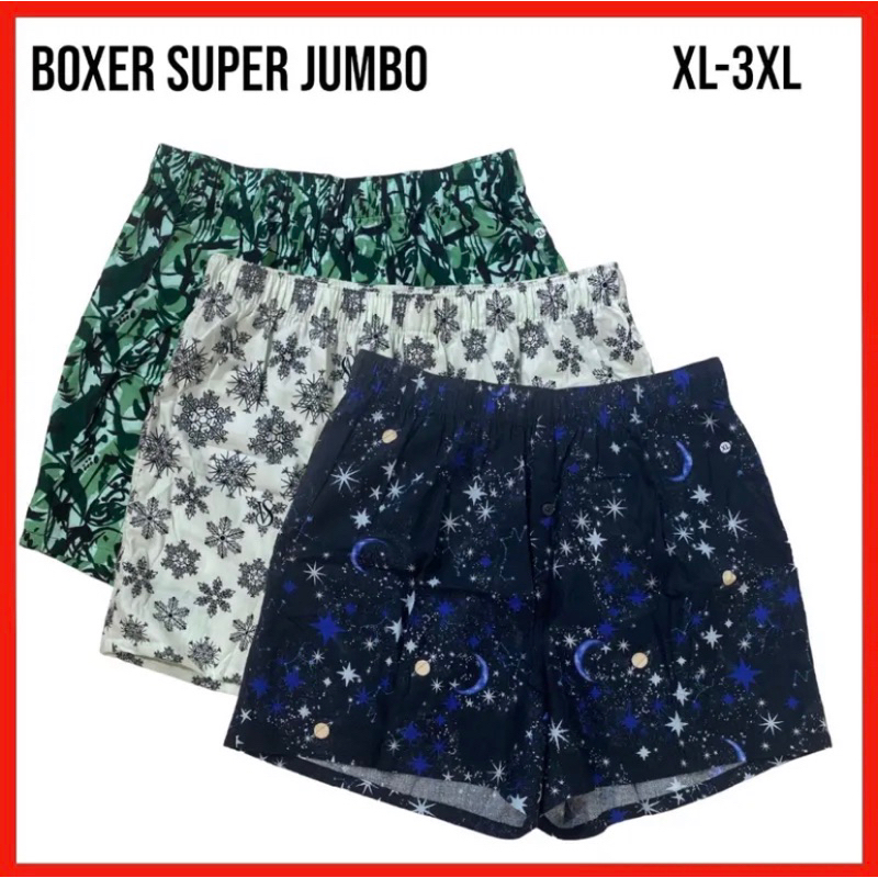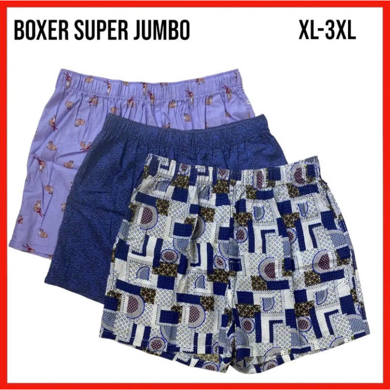Paket 3 Pcs Celana Boxer Pria Jumbo size | XL | XXL | 3XL | 4XL | Bahan katun printing