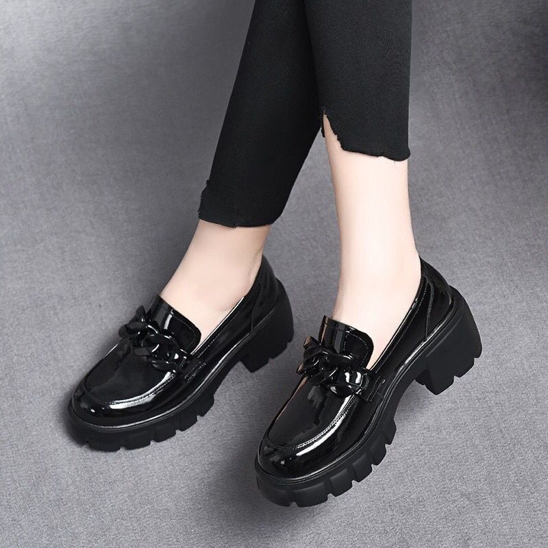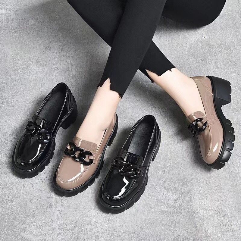 DTSSHOP Sepatu Loafers Wanita Sepatu Docmart Rantai Black
