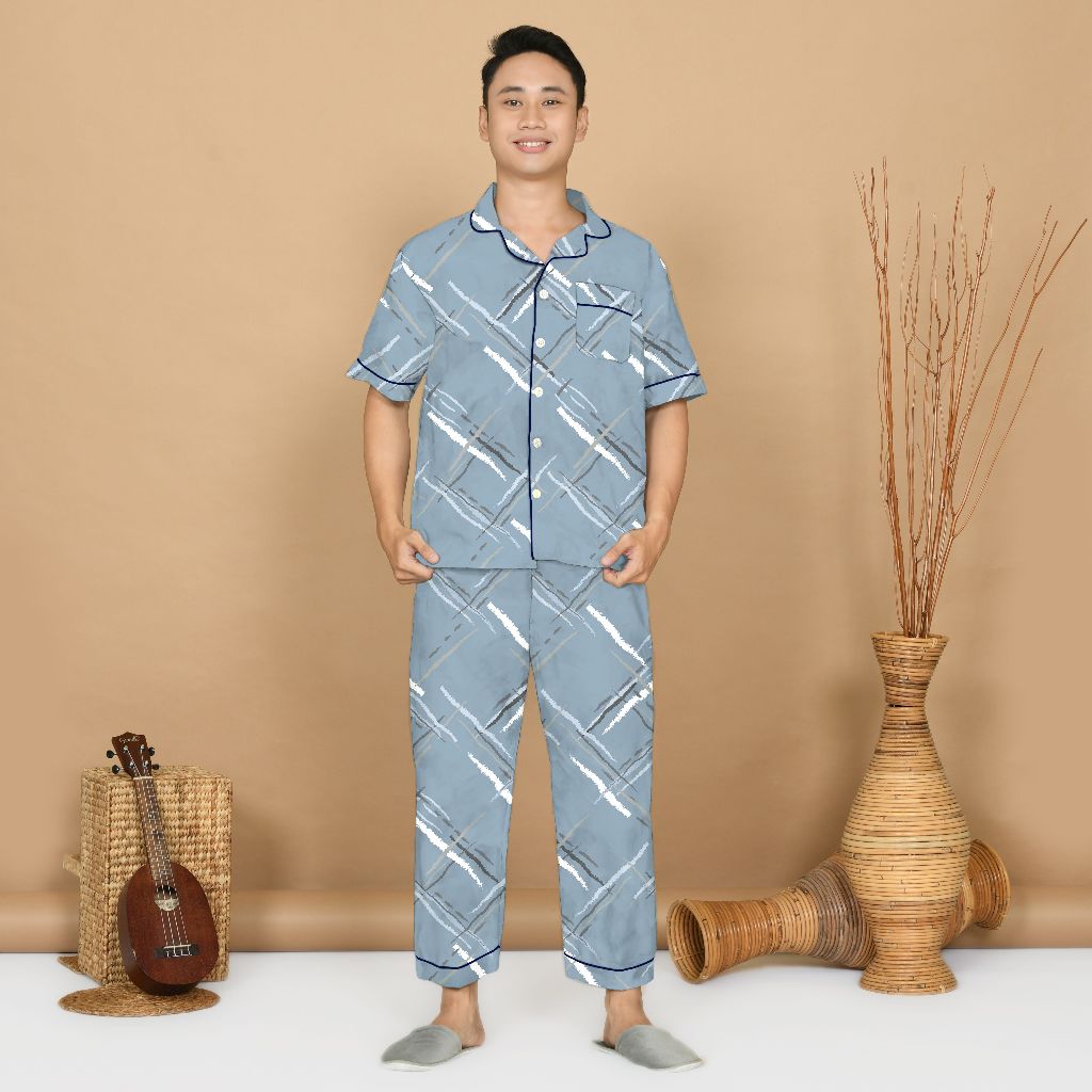 CUCI GUDANG Piyama Pria CP M, L, XXL Katun / Setelan Baju Tidur Celana Panjang Cowok