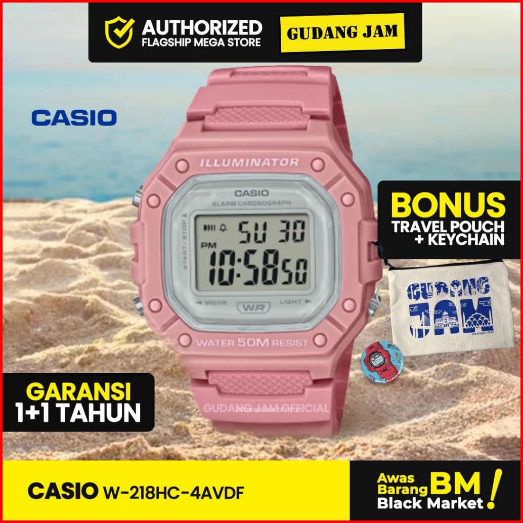 Jam Tangan Digital Casio Standard W-218hc-4avdf Illuminator Resin Band