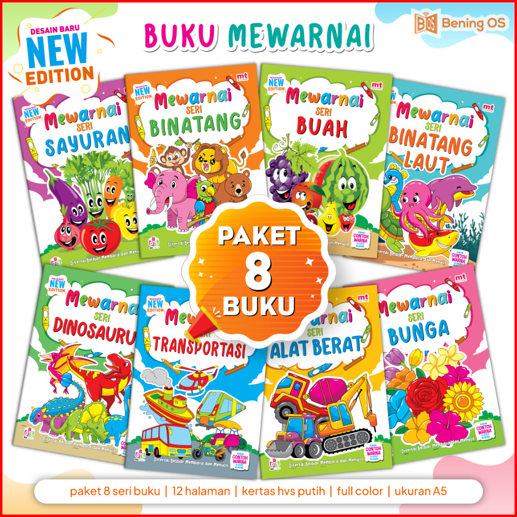 Mt - Paket 8 Buku Mewarnai Anak Ukuran Kecil Hvs 75 Gsm