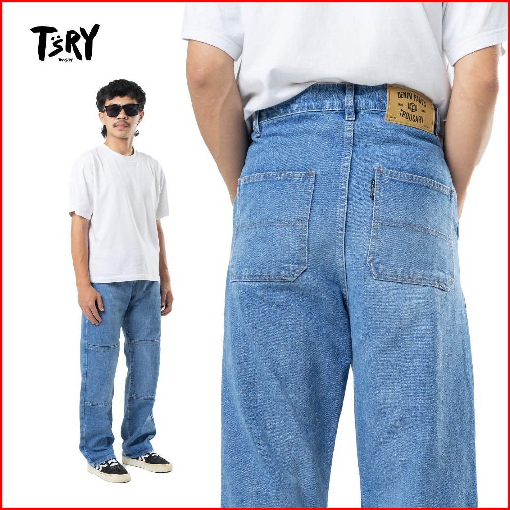Trousary Celana Jeans Scraft Model Loose Reguler Fit Bahan Premium Size S Sampai 3xl