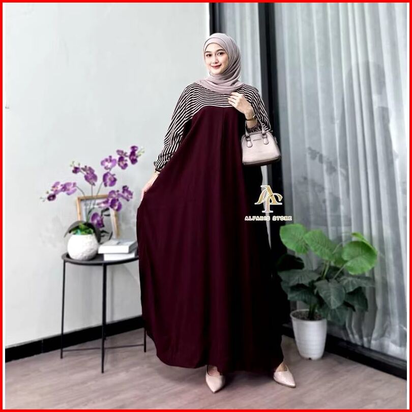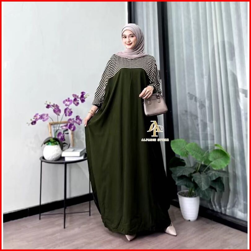 Kaftan Miska By Batik A W Home Dress Kaftan Lebaran Jumbo Motif Salur Busui Kaftan Rayon Premium