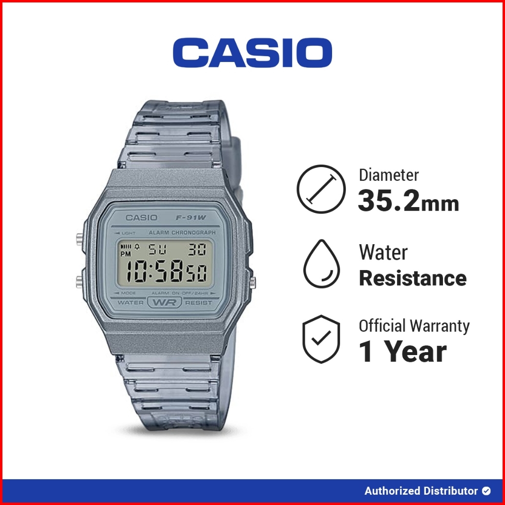 Casio Jam Tangan Original F-91ws-8df Transparent Resin Band