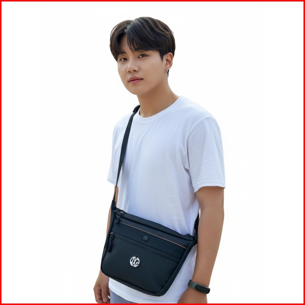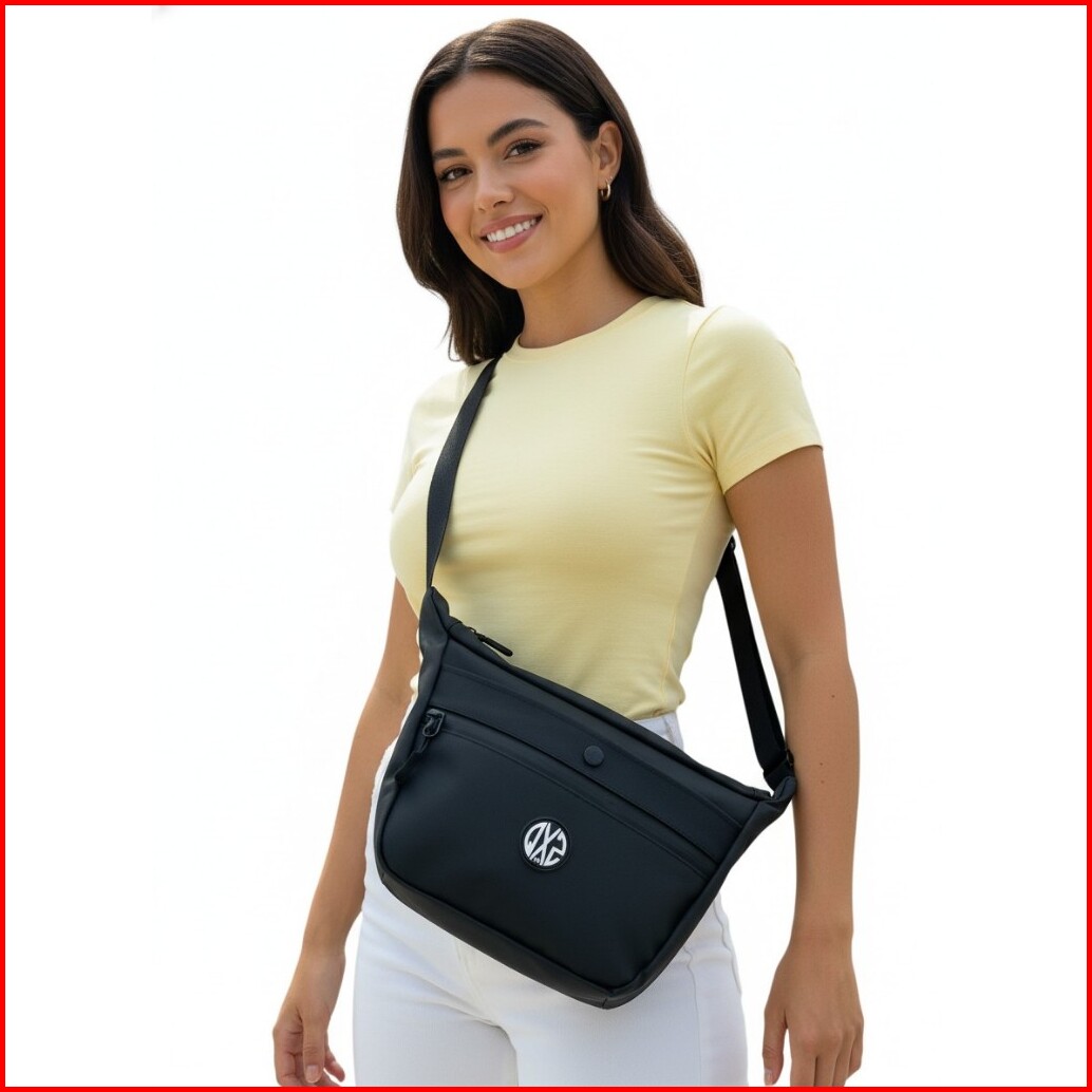 Qxz94 Tas Selempang Anti Air Pria Wanita Bahan Bimo Cordura Hitam Waterproof 28x20cm Qsbbimo01