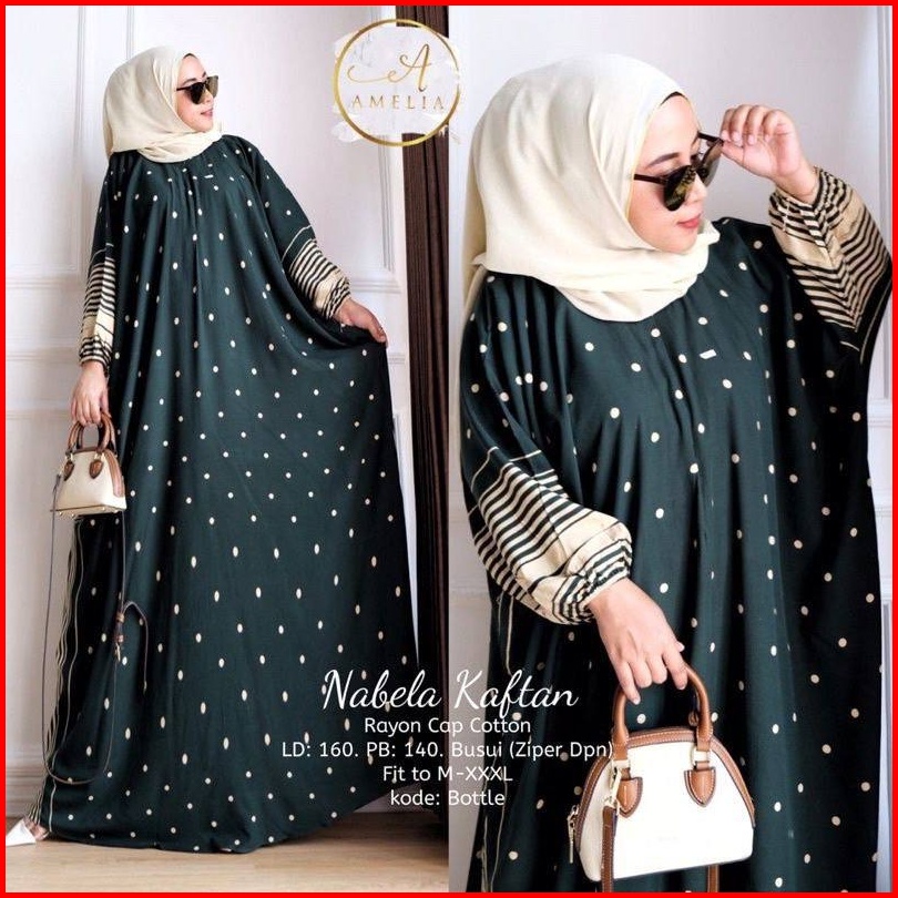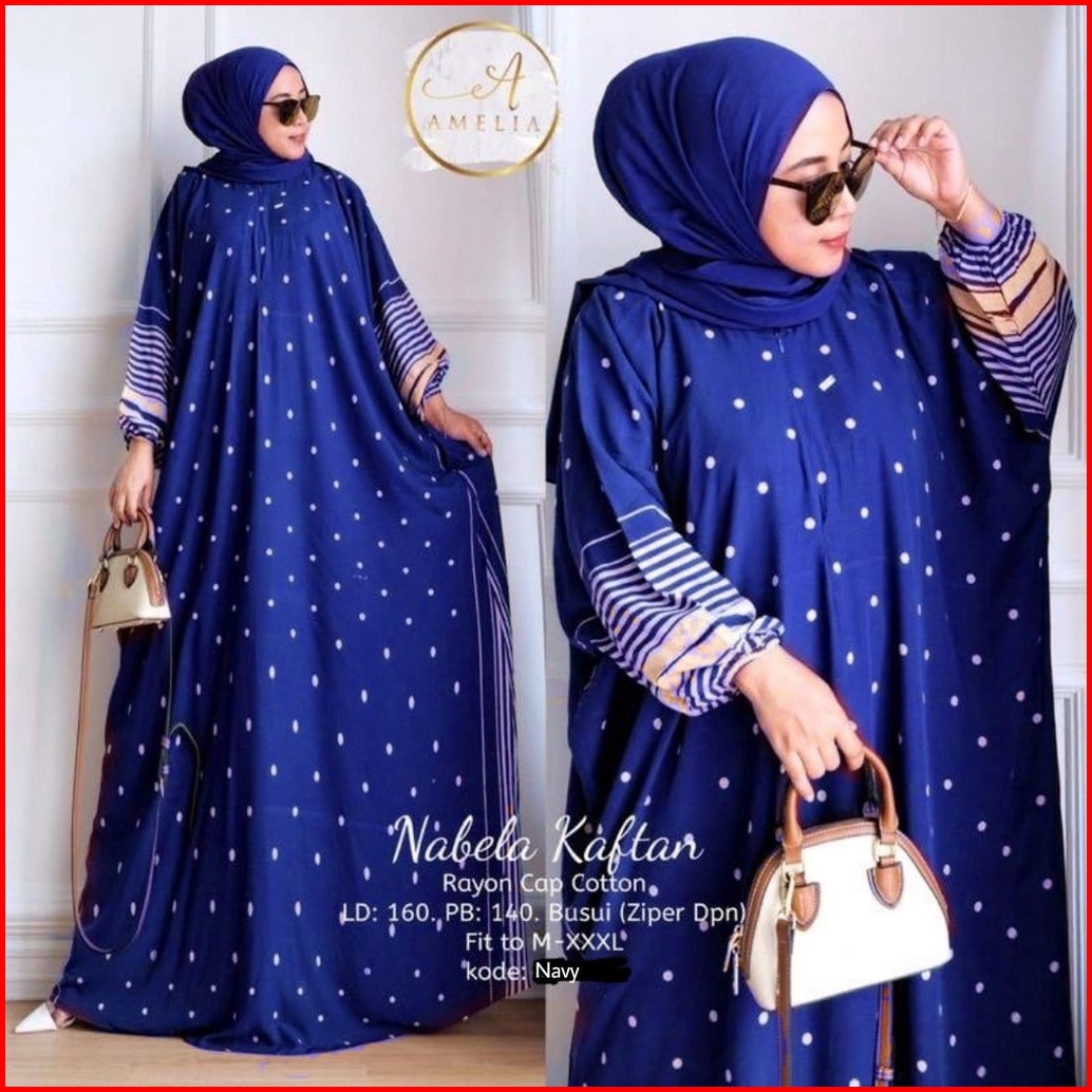 Batik A W - Nabela Kaftan Wanita Jumbo Xxxxl Motif Batik Polkadot Busui Resleting Lengan Panjang Rayon Premium Kaftan Ko