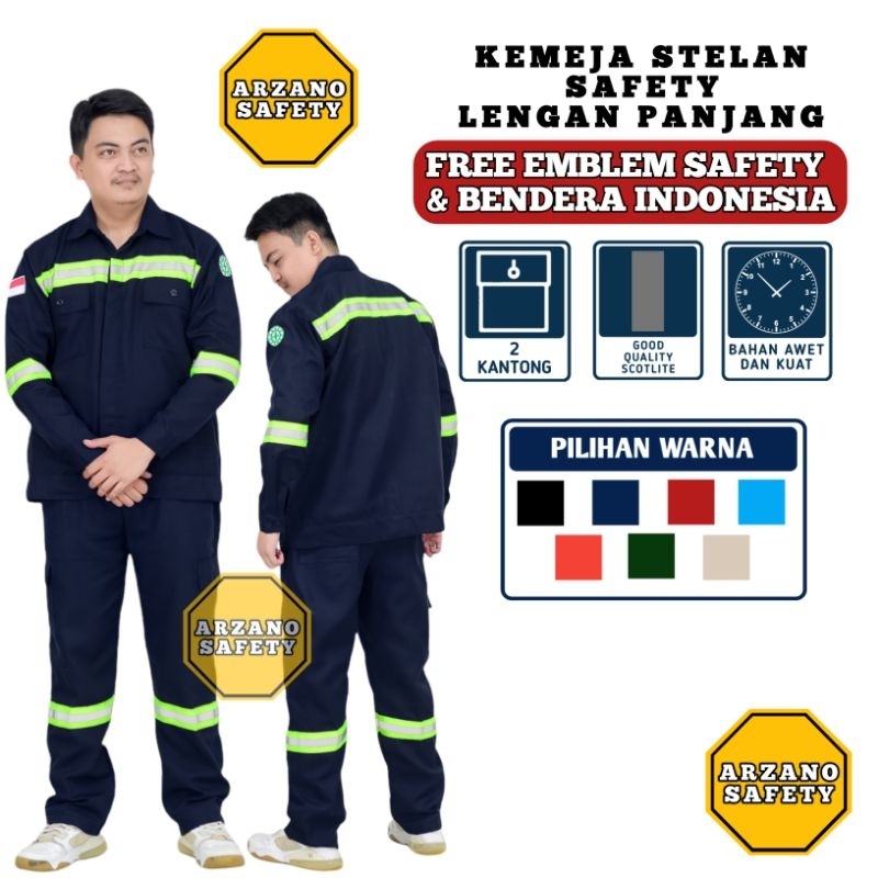 Arzano Safety - Wearpack Stelan Baju Stelan Safety Seragam Kerja Stelan Tangan Panjang
