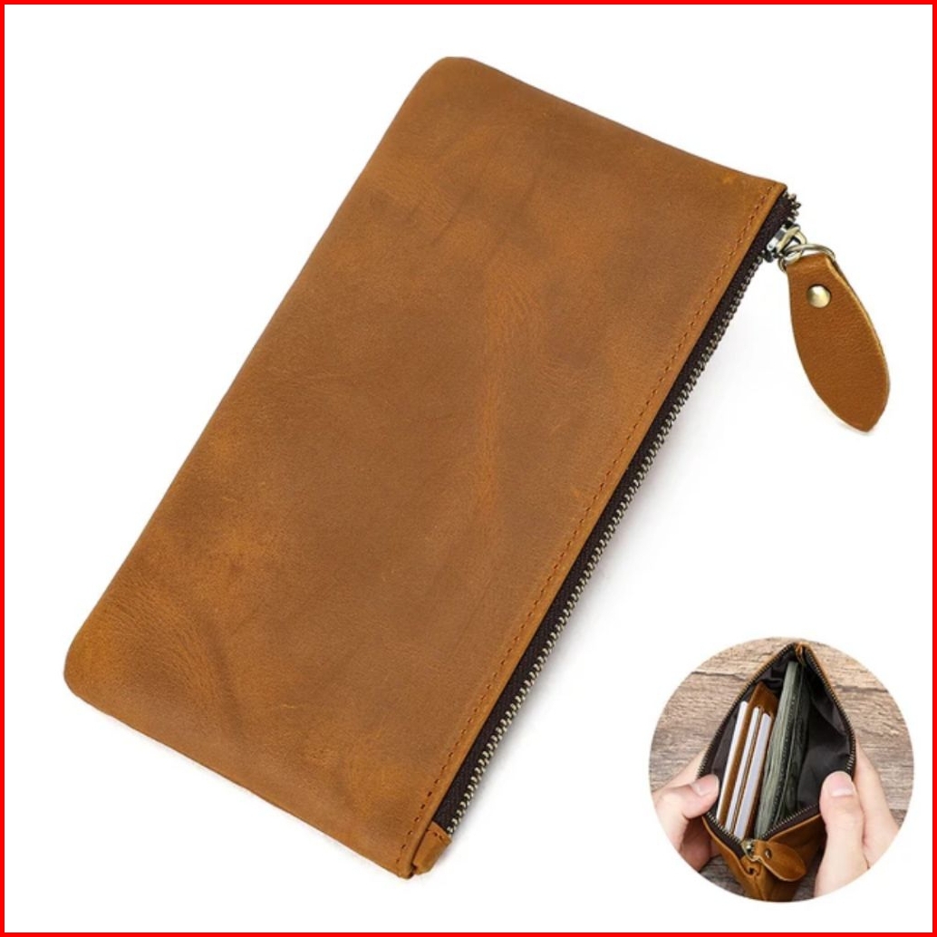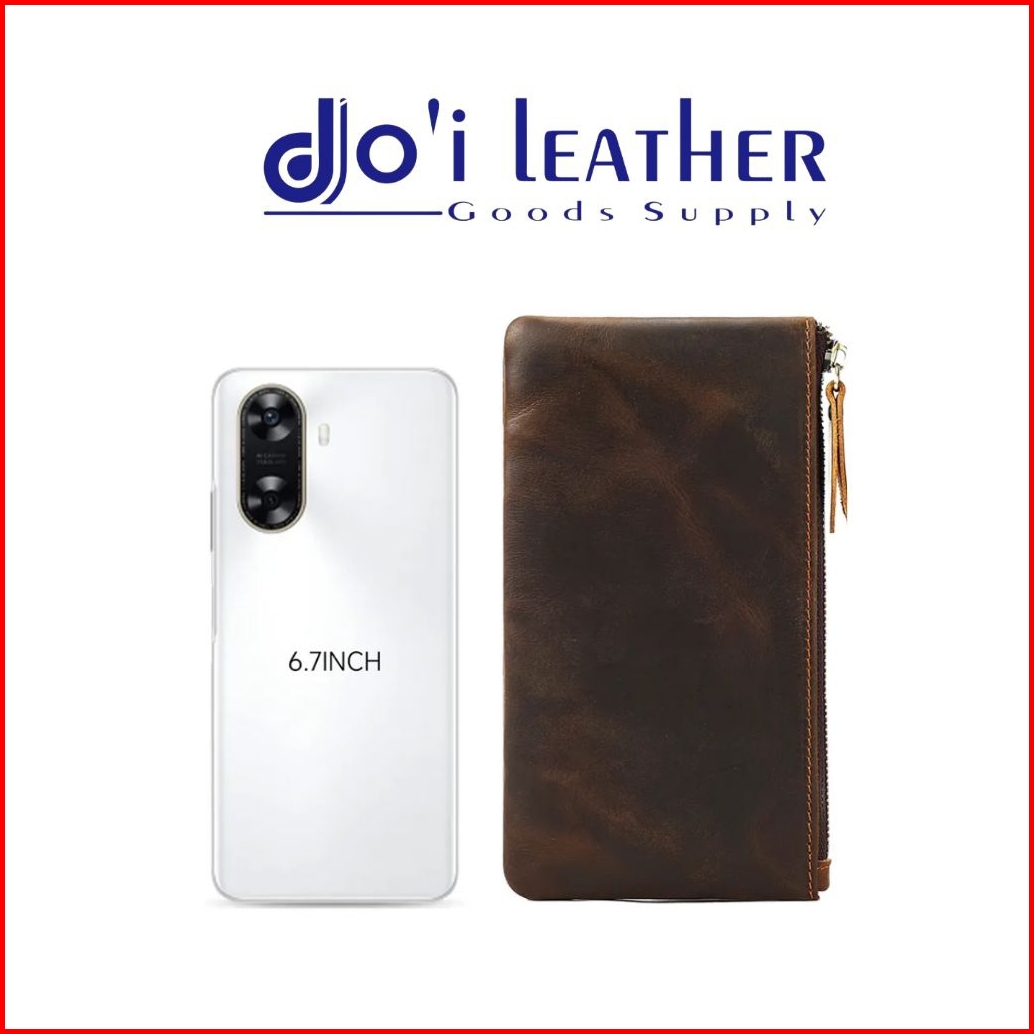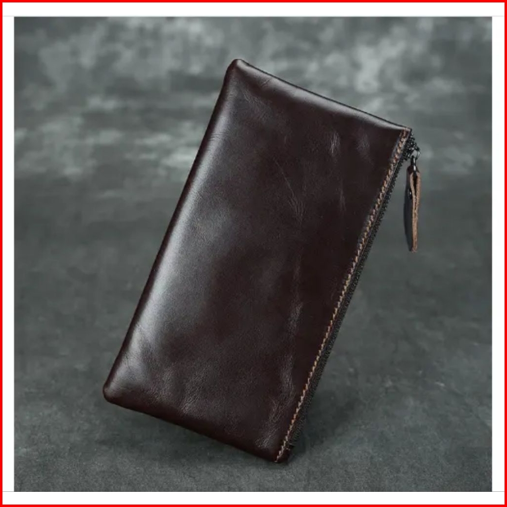 Doi Leather Dompet Panjang Wanita Priatipis Panjang Kulit Asli Pouch Wallet Kulit Asli Dompet Tipis Dompet Wanita Papiru