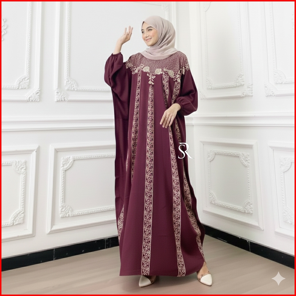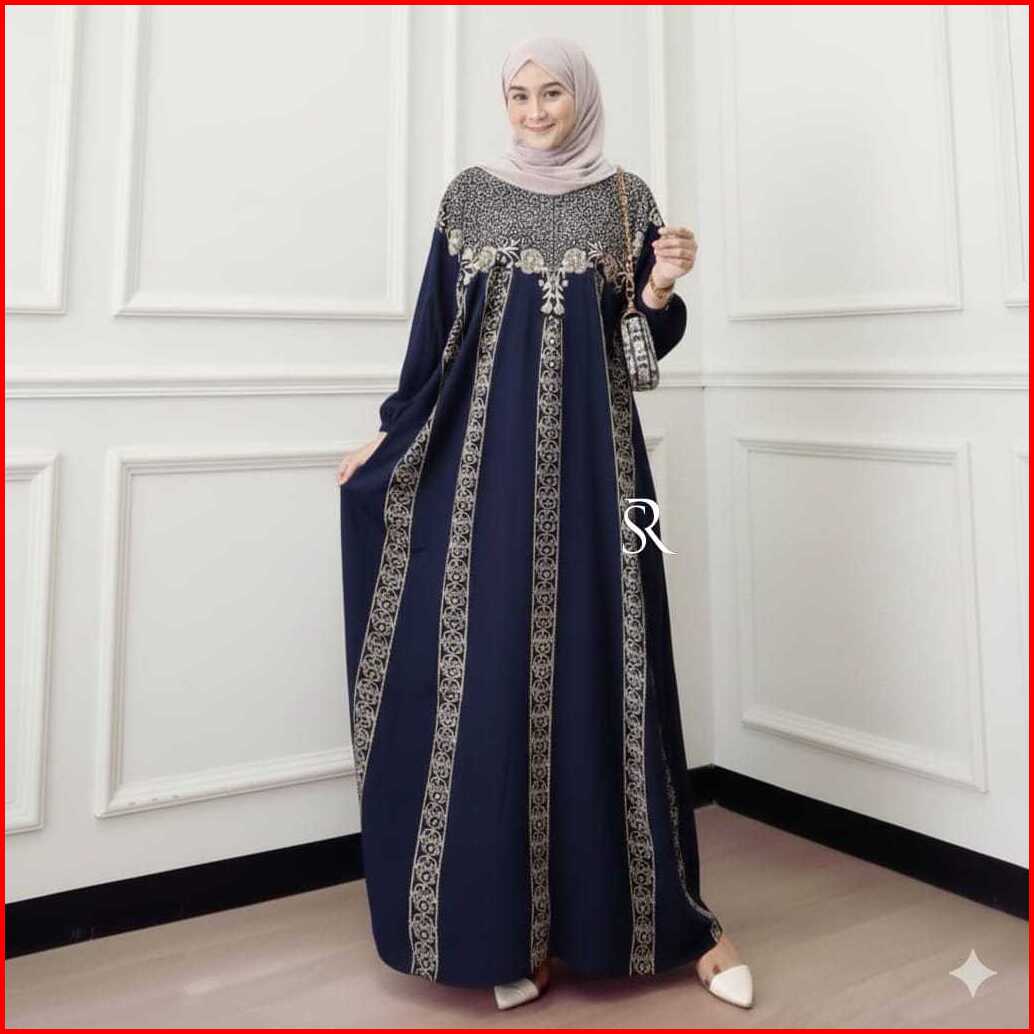 Kaftan Motif Dendana Ld 180 Cm Resleting Depan Busui Lengan Karet Bahan Rayon Premium Tebal