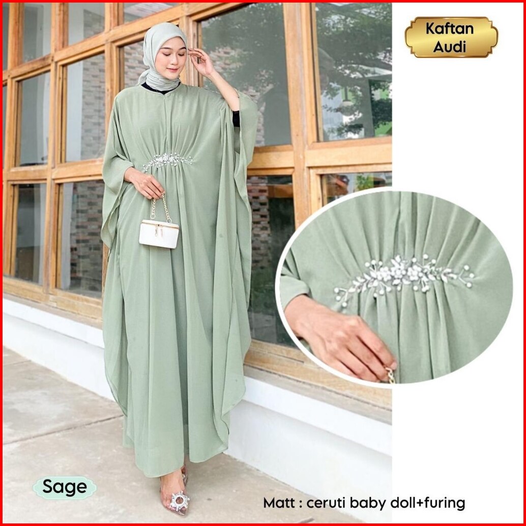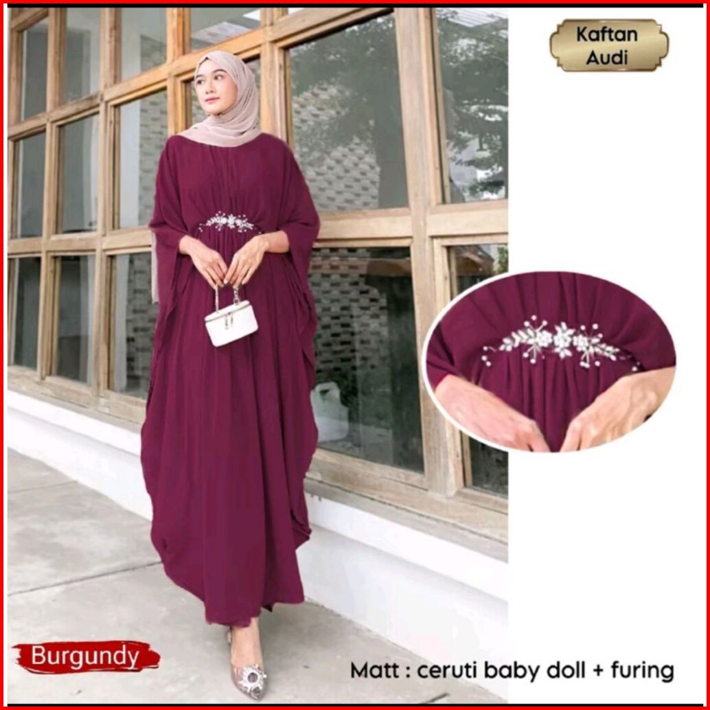 Baju Kaftan Modern Audy Series Dress Baju Lebaran Wanita Terbaru Baju Gamis Pesta Kondangan Nikahan Kekinian Bahan Cerut
