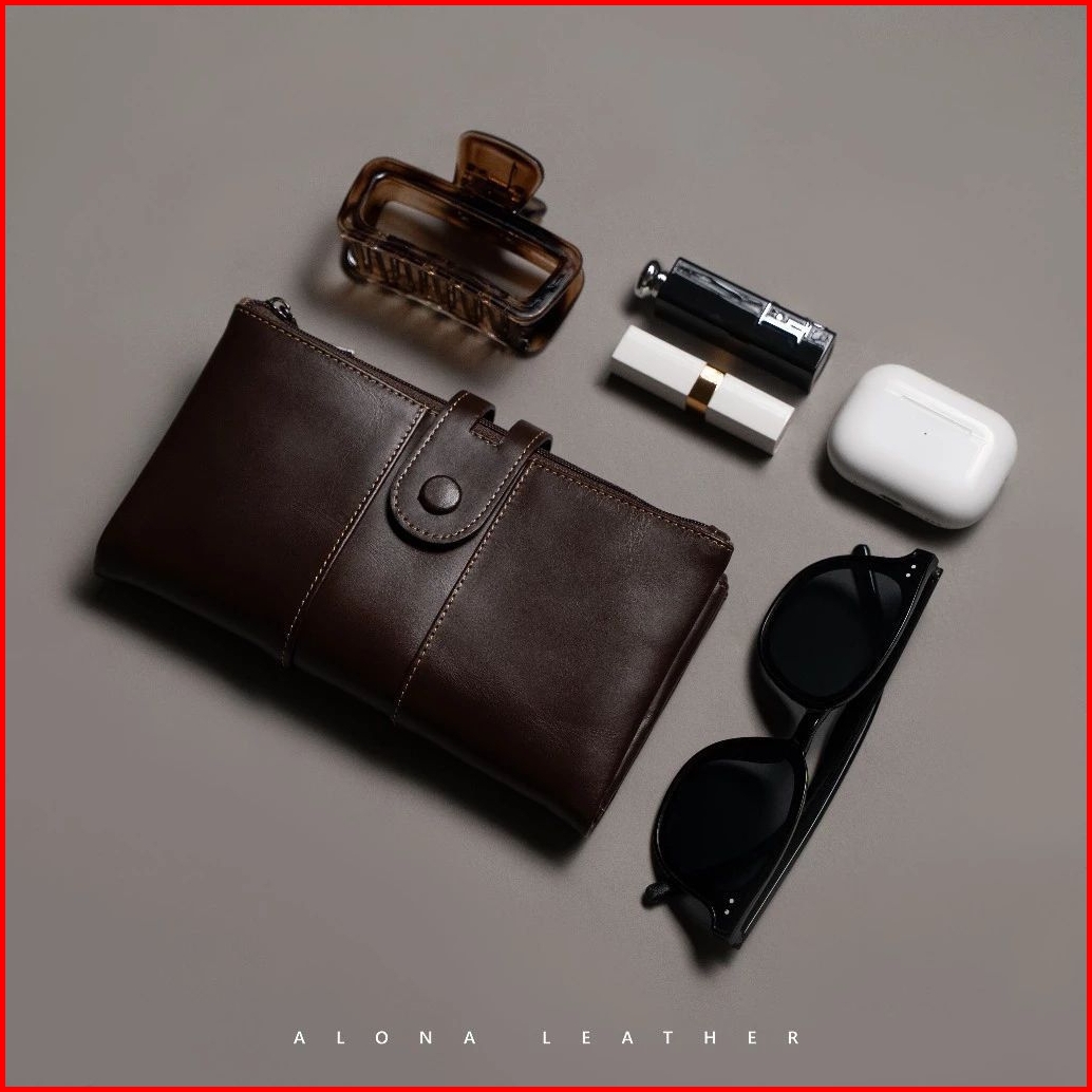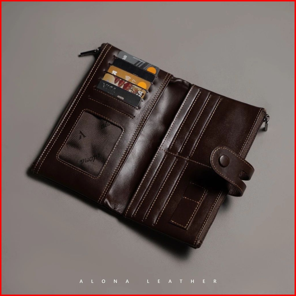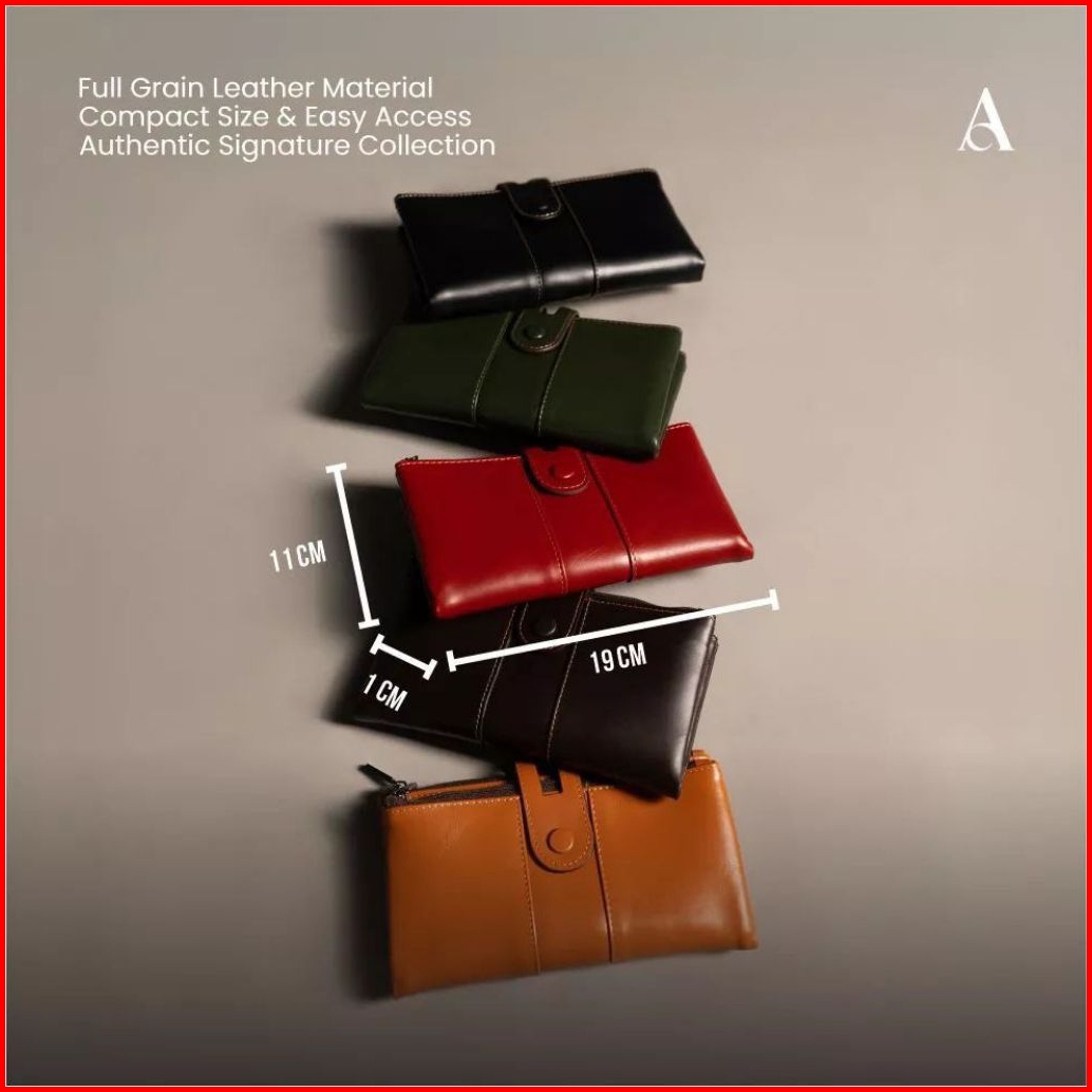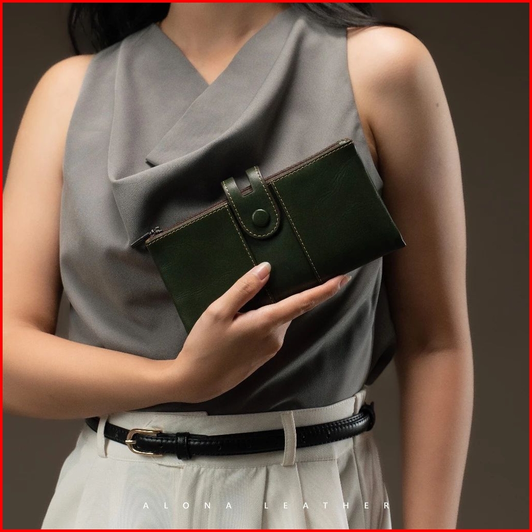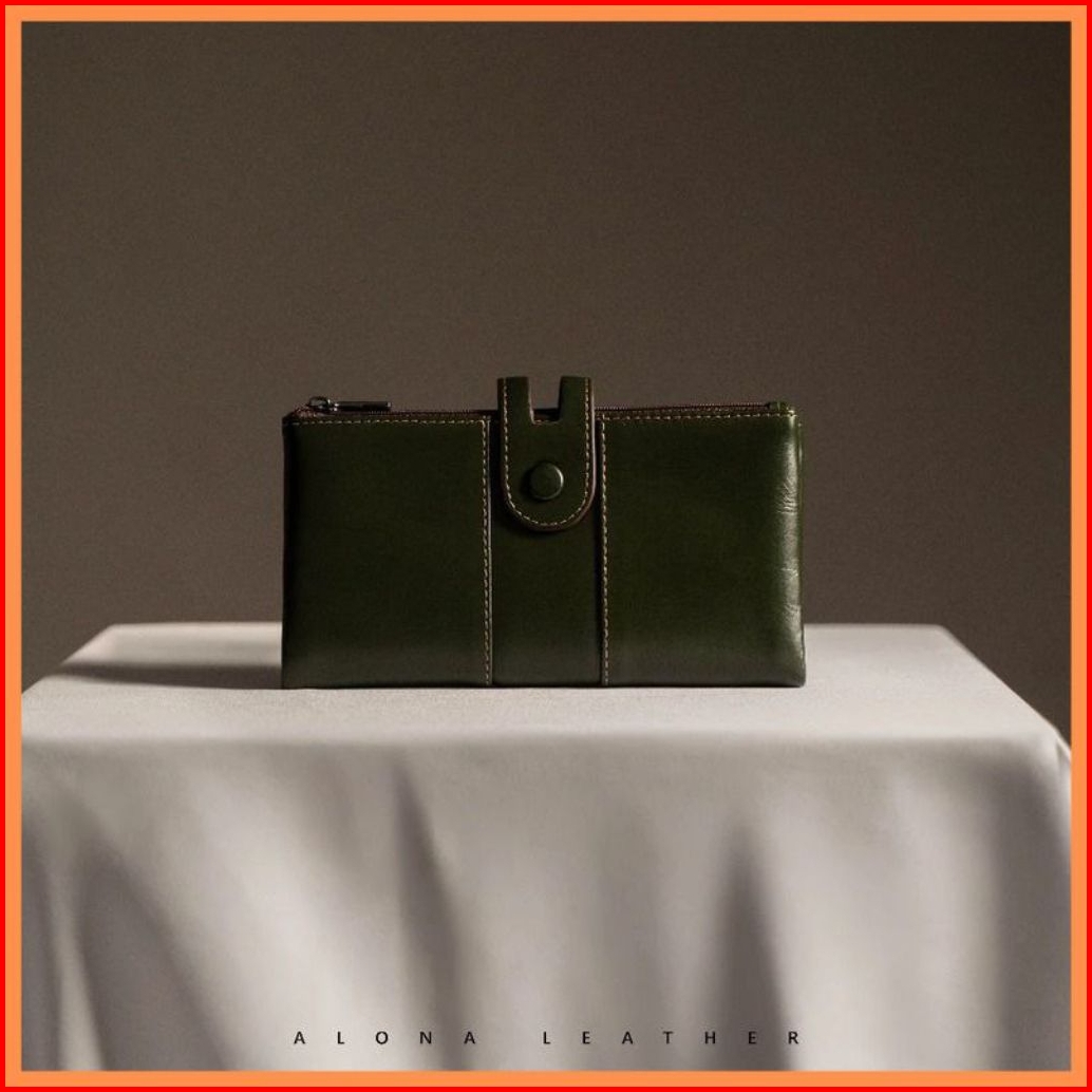 Alona Leather Geisha Wallet - Dompet Panjang Lipat Kartu Slot Koin Wanita Muat Hp Bahan Kulit Sapi Asli 100 Original