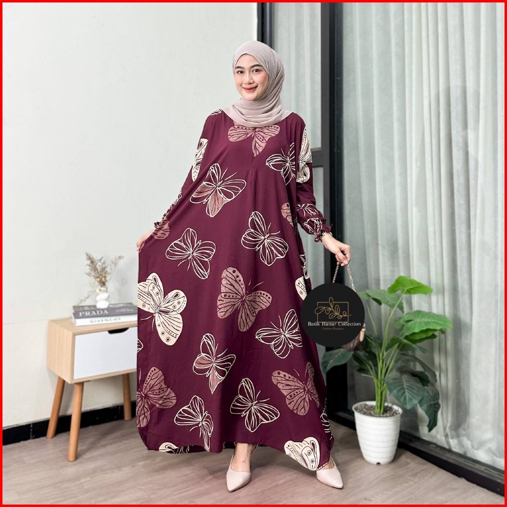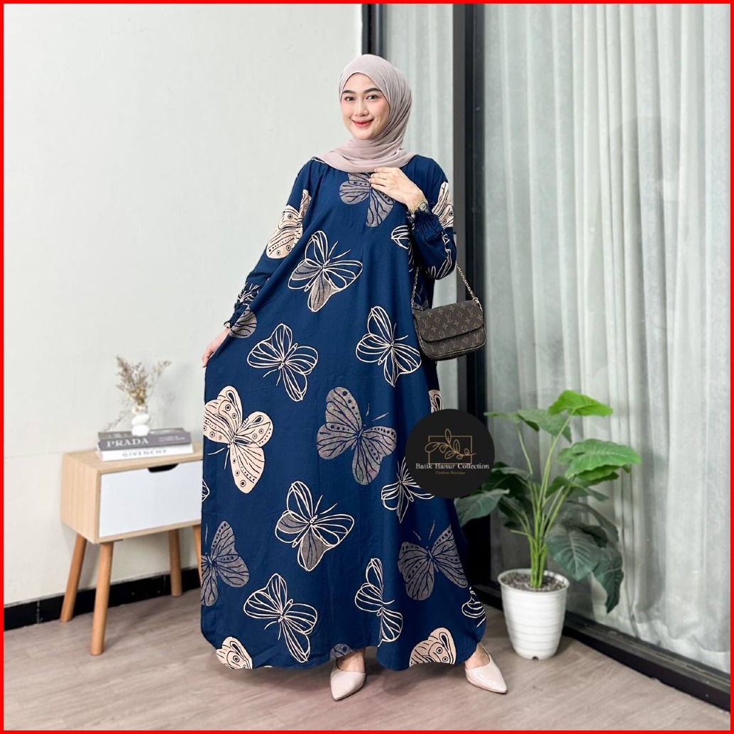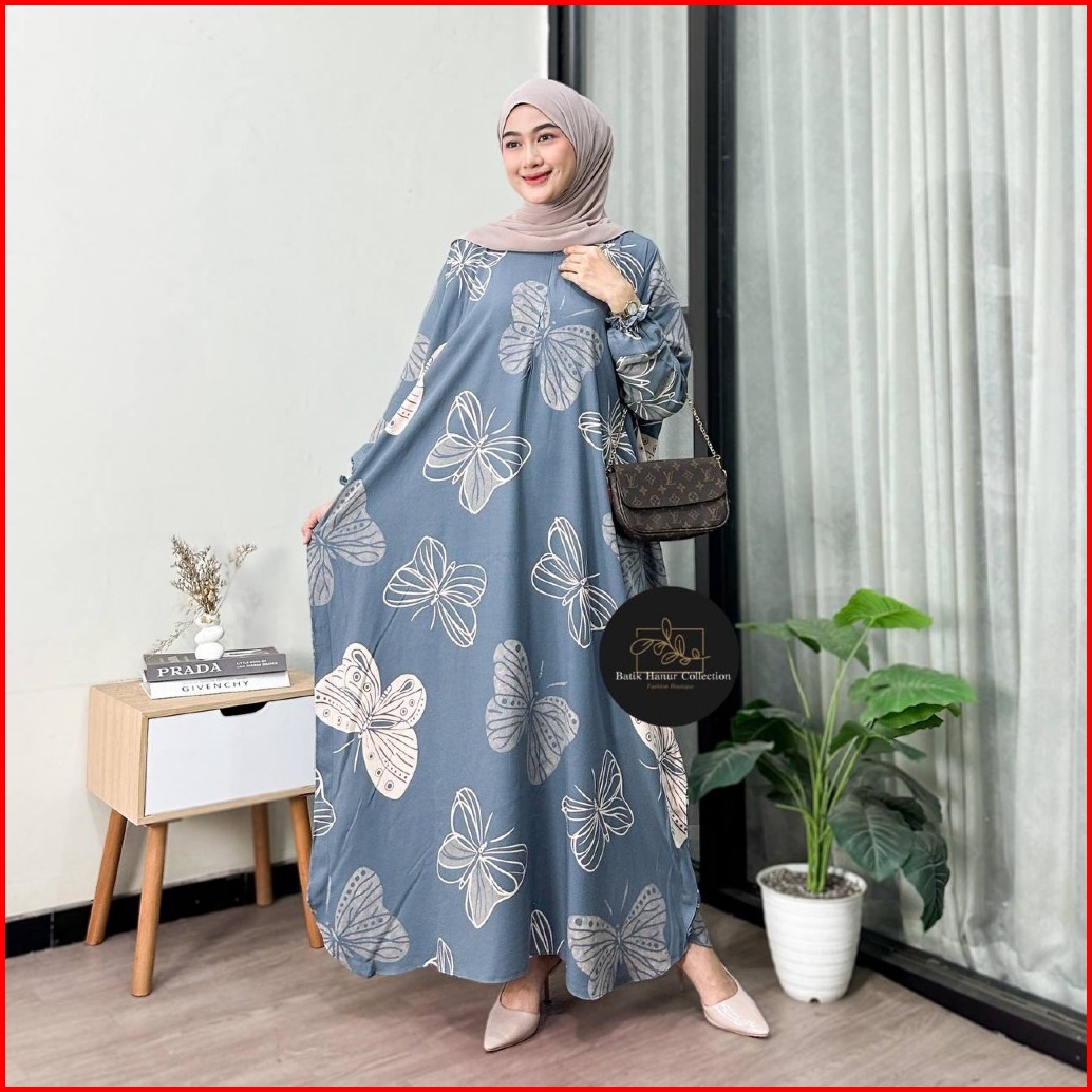 Kaftan Kupu Kupu Premium Rayon Super Jumbo Busui Dress Nyaman Panjang Tebal