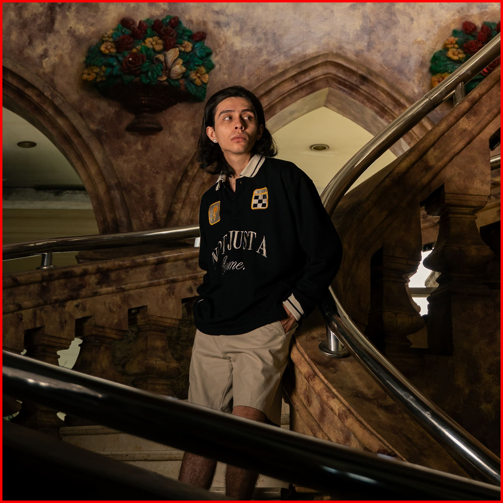 Polo Long Sleeve Lucha Black Walkvibes Waffle Fabric