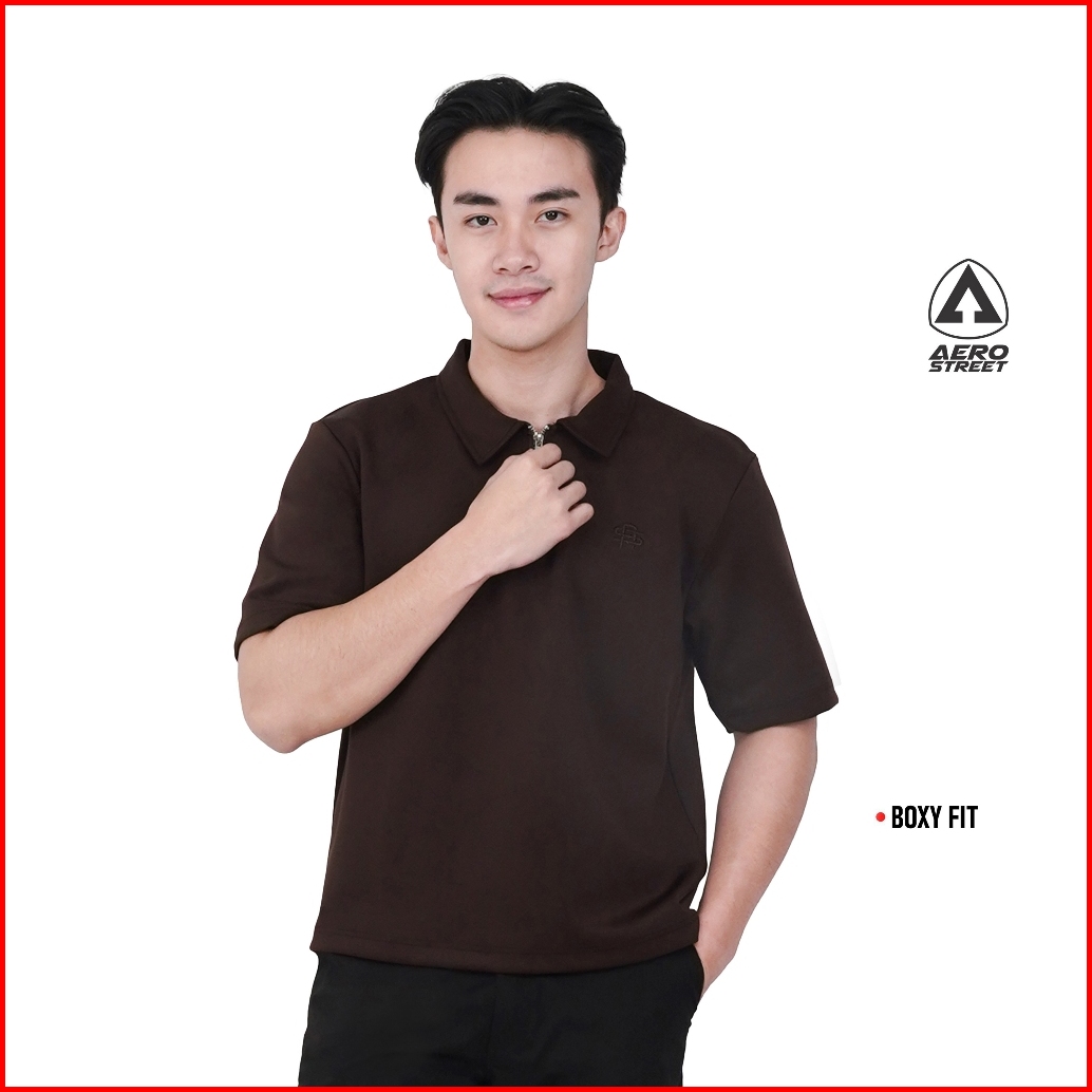 Aerostreet Lex Kaos Polo Pria Brown Poloshirt Kerah Cowok Men Casual Desain Dengan Resleting Praktis Tidak Mudah Kusut C