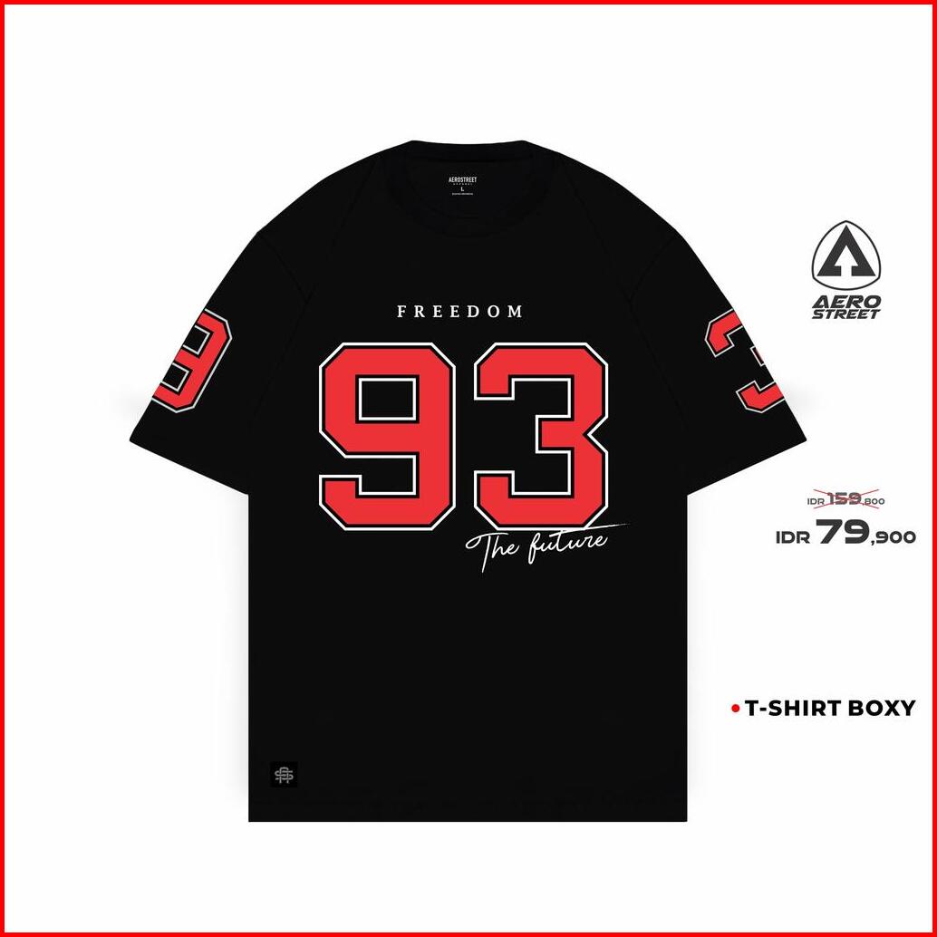 Aerostreet T Shirt Boxy Fit Freedom 93 Hitam Man Kaos Tshirt Fc3aa