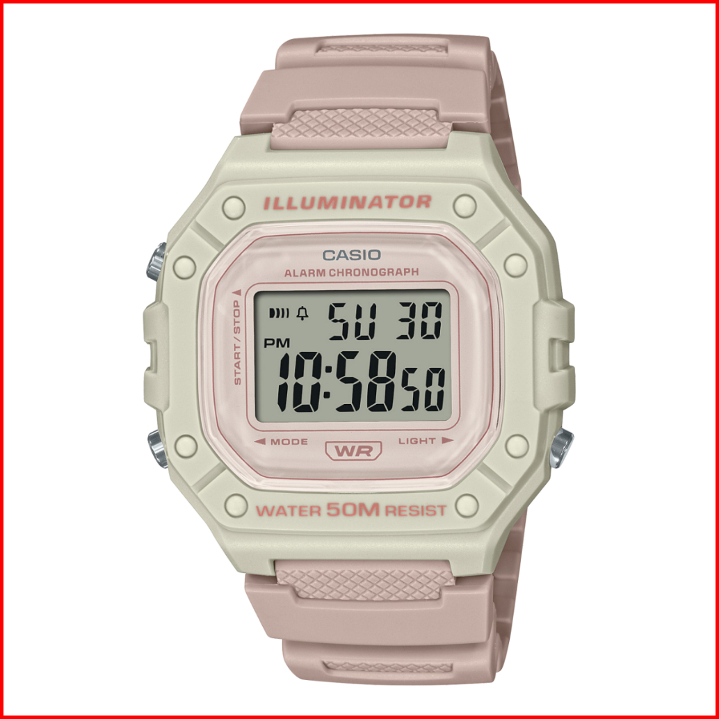 Casio Jam Tangan Wanita W-218hc-4a2vdf Digital Original Pink