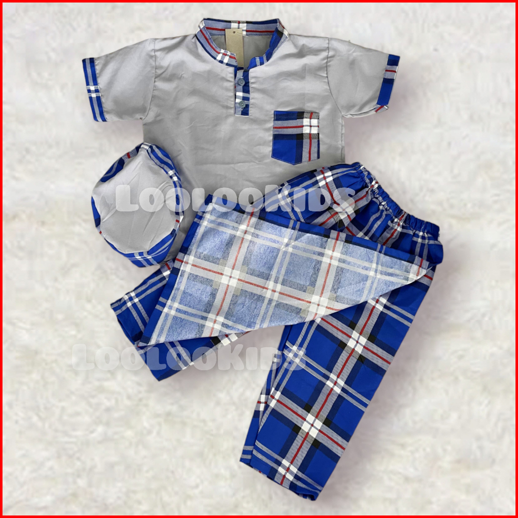 Setelan Koko Sarkoci Baju Celana Peci Anak Laki-laki 1-7 Tahun Elegan Terbaru - Stelan Muslim Sarung Cowok Motif Terlari