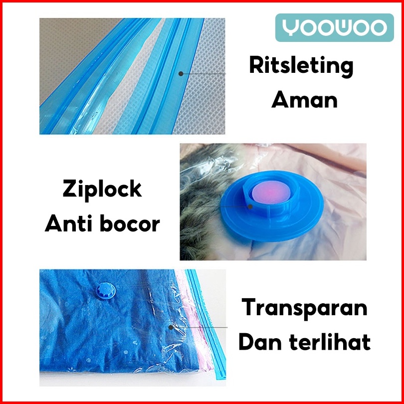 Yoowoo Plastik Vacuum Baju Travel Packing Plastik Ziplock Vacuum Baju Traveling Plastik Packing Baju Dan Pompa Kompress