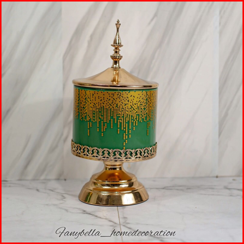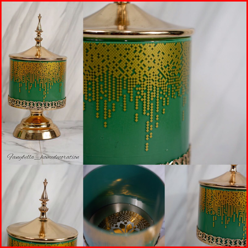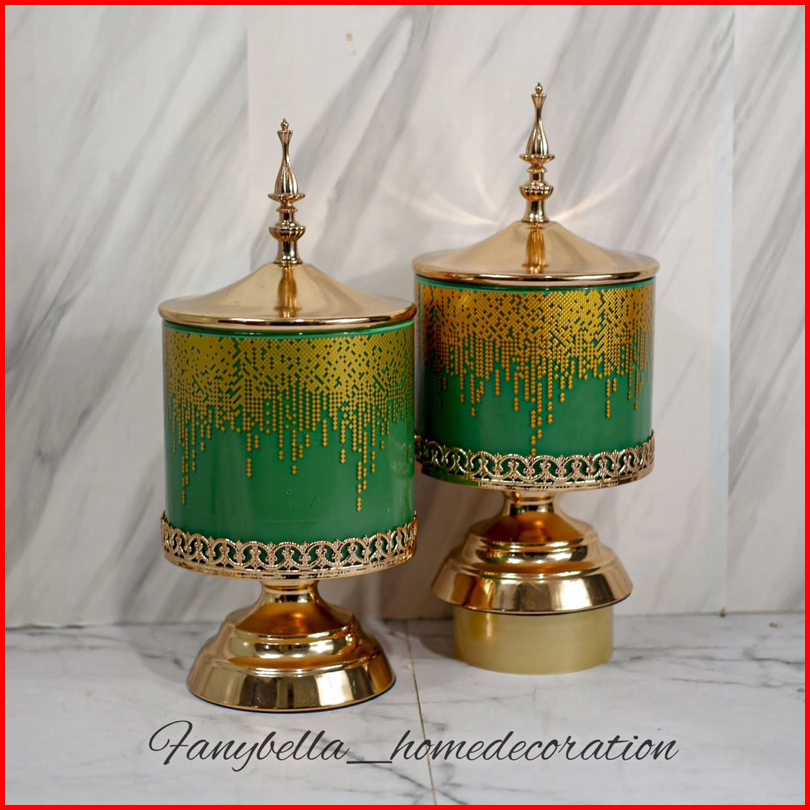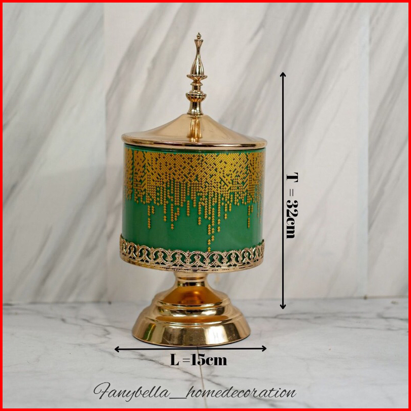Toples Kaca Set Mewah Sultan Turki Motif Hijau Lebaran Dekorasi Rumah