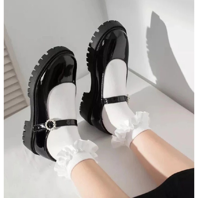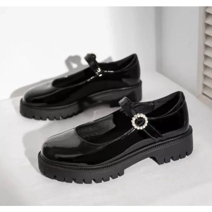 MG SEPATU WANITA HITAM BLACK GLOSSY PREMIUM KOREAN STYLE DOCKMART PANTOFEL GESPER MUTIARA GESMUT OXFORD KEKINIAN SE