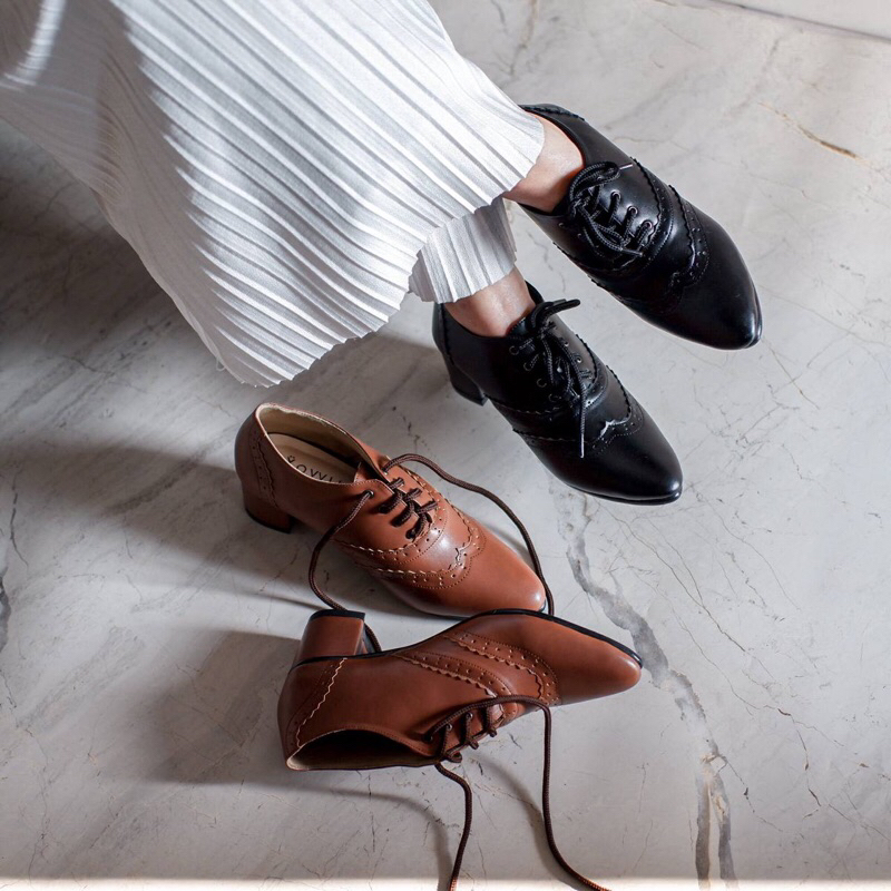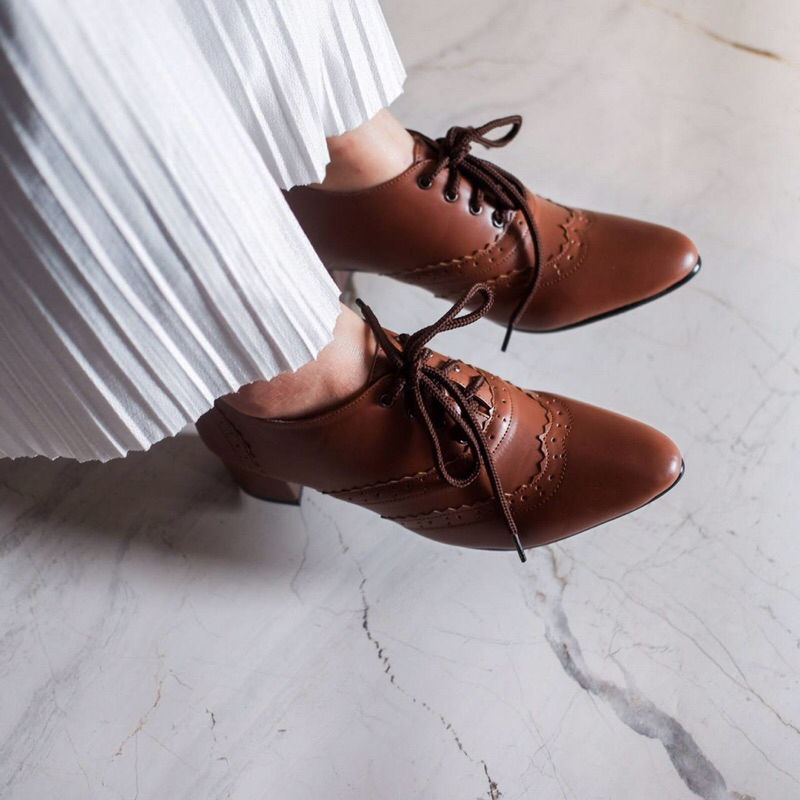 Yovvli Oxiera Oxford Sepatu Wanita Kulit Sintetis