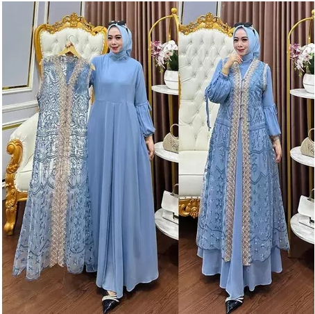 baju gamis New Dress Naura Inner Outer Cerutty Mix Brukat Bordir Plus Renda Gamis Pesta Mewah Elegan 2025 TERLARIST