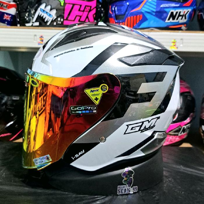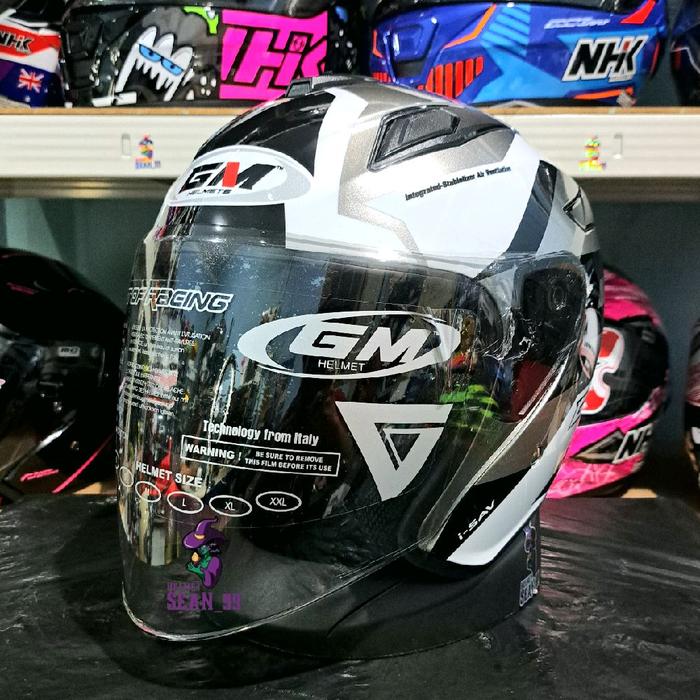HELM GM KING FIGHTER KAZUKI DARK GREY BLACK VISOR LIGHT SMOKE HALF FACE ORIGINAL SNI - HELM ORIGINAL, M