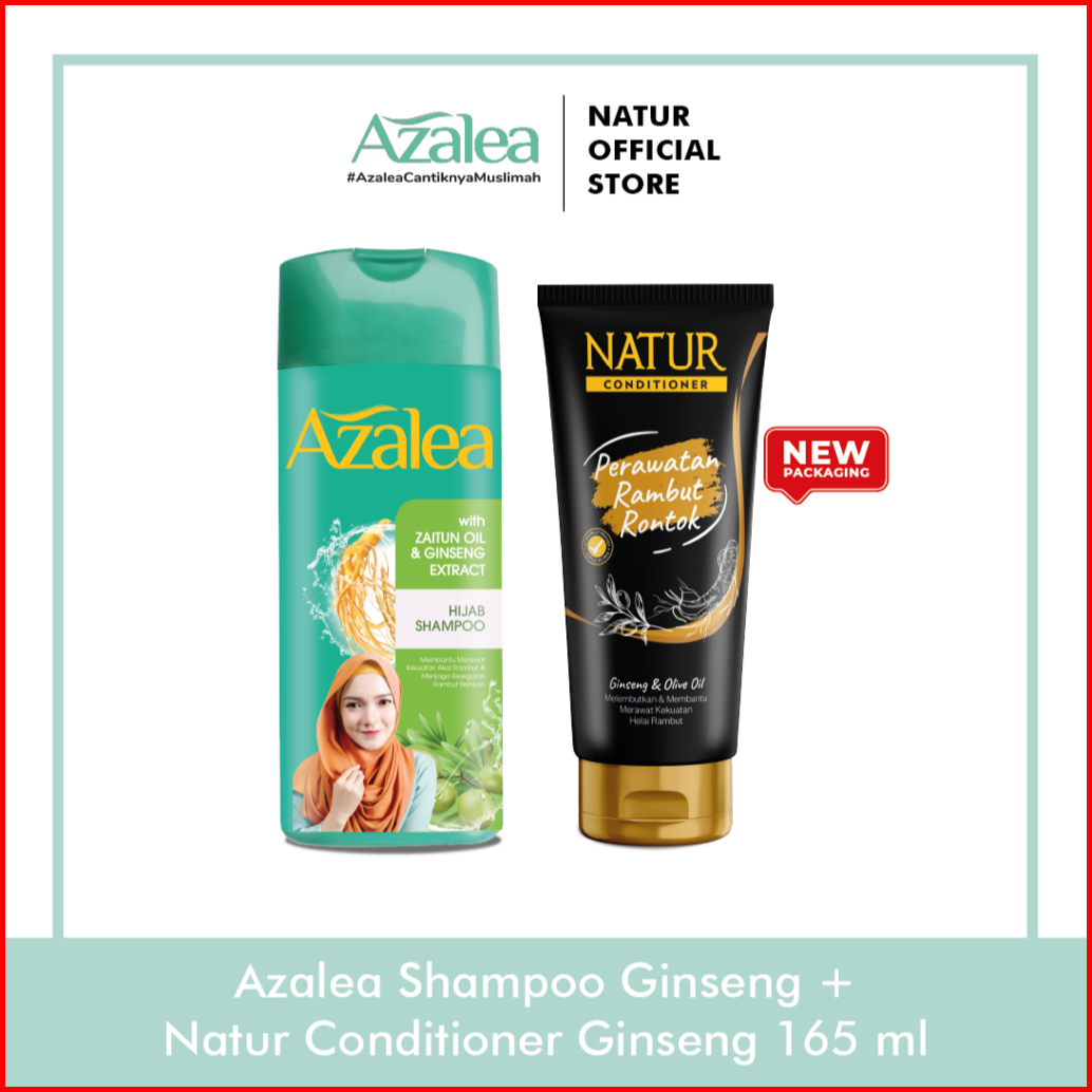 Azalea Hijab Shampoo 180 Ml Natur Conditioner 165 Ml - Paket Perawatan Rambut Lepek Rontok