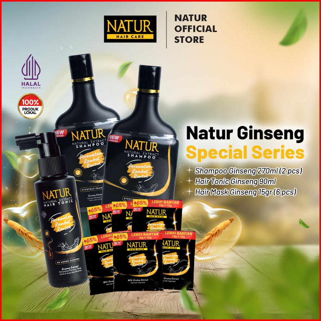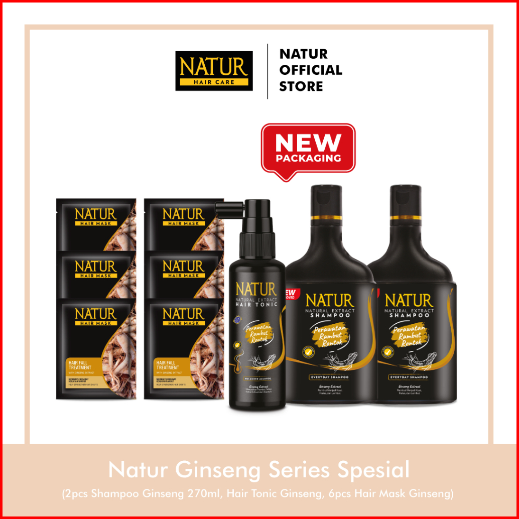 Natur Ginseng Series Spesial 270 Ml 2 Pcs Tonik Ginseng 1 Pcs H. Mask Ginseng 6 Pcs - Paket Rambut Rontok Anti Hair Fall