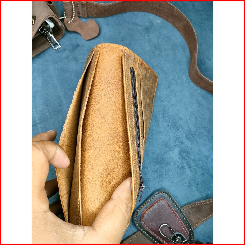 Dompet Kulit Asli Pria Wanita Crazy Horse Lemitid Motif Classic