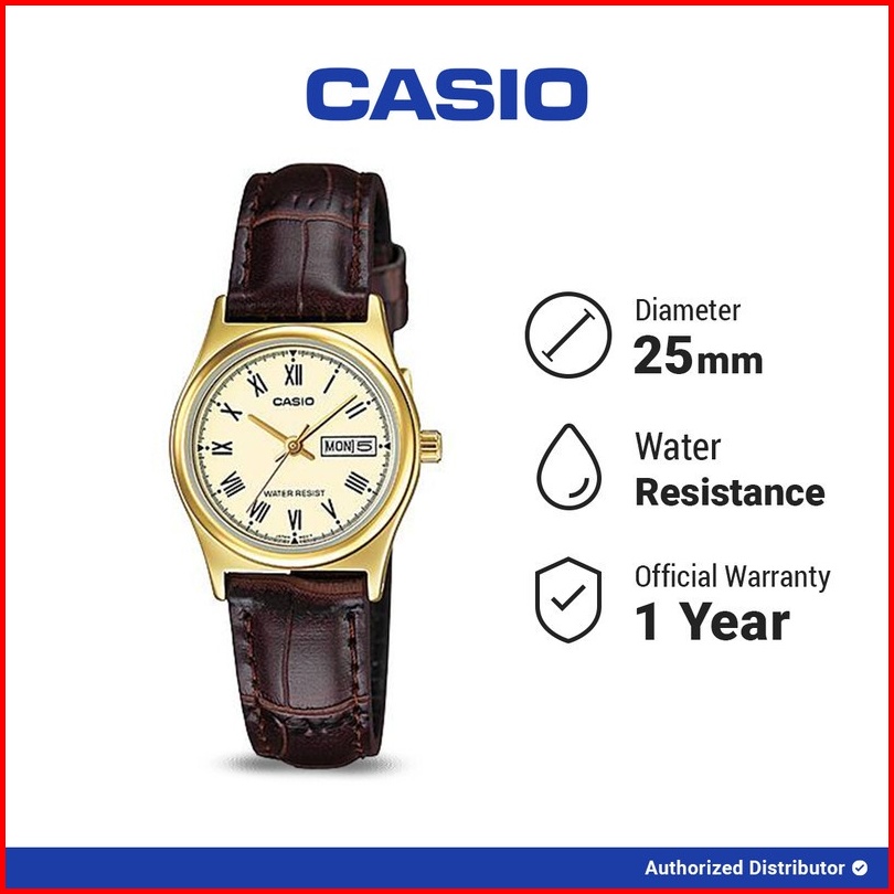 Casio Jam Tangan Wanita Ltp-v006gl-9budf Original Analog Brown