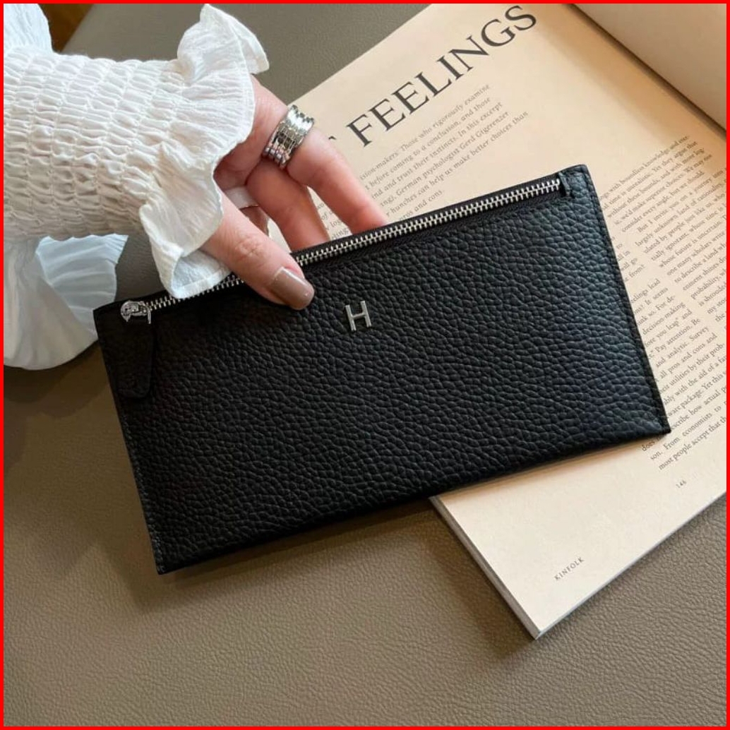Dompet Panjang Resleting Super Tipis Bahan Kulit Sapi Lentur Kasual Long Wallet