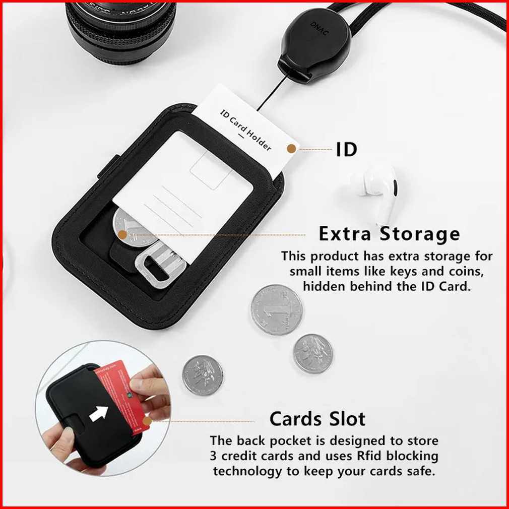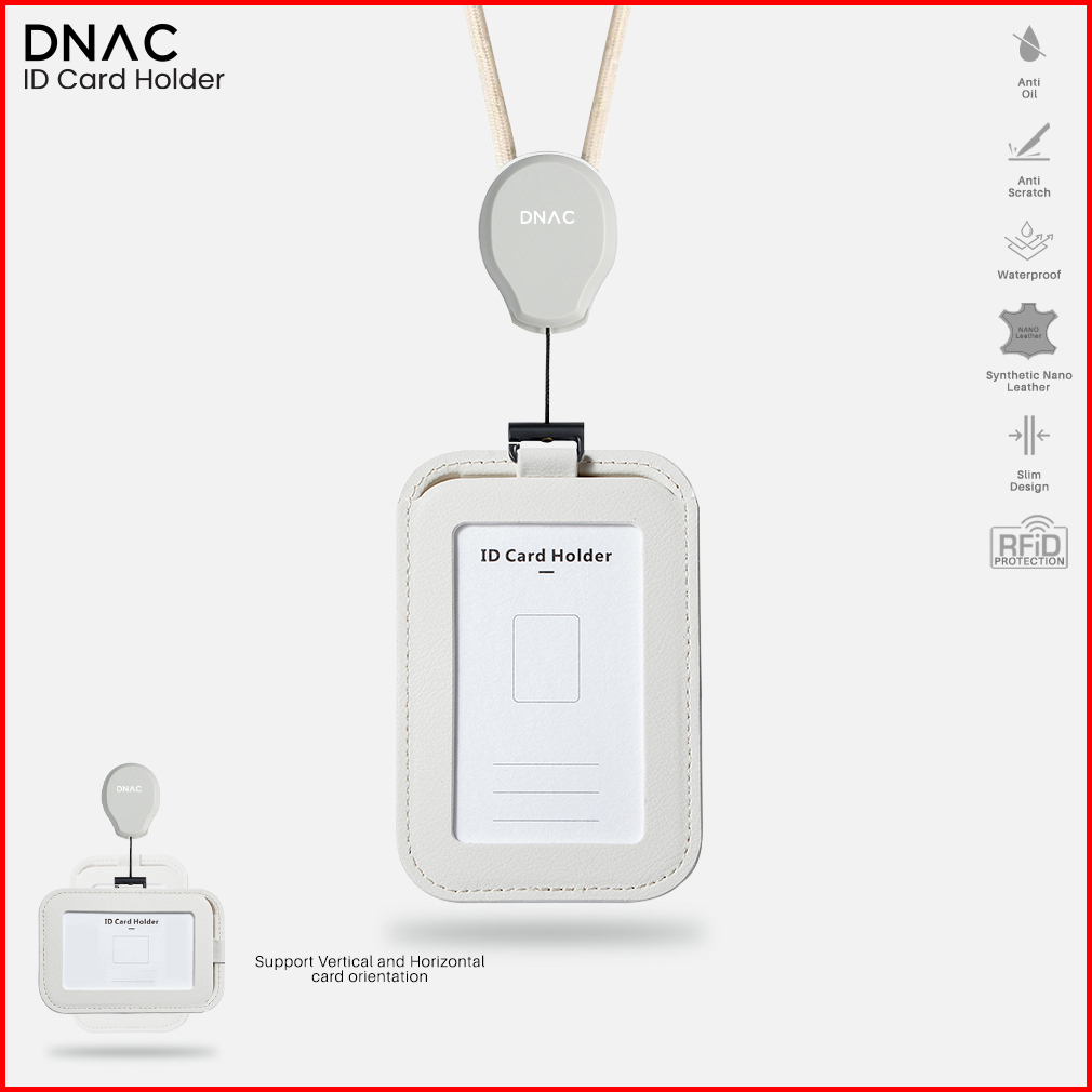 Dnac Id Card Holder And Card Slots With Ribbon Lanyard - White