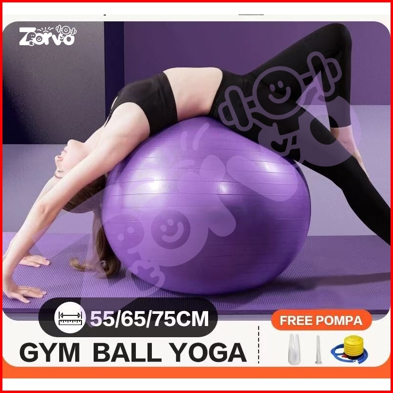 Zorvo Gym Ball Free Pompa Gym Ball Ibu Hamil 55 65 75cm Bola Yoga Alat Olahraga