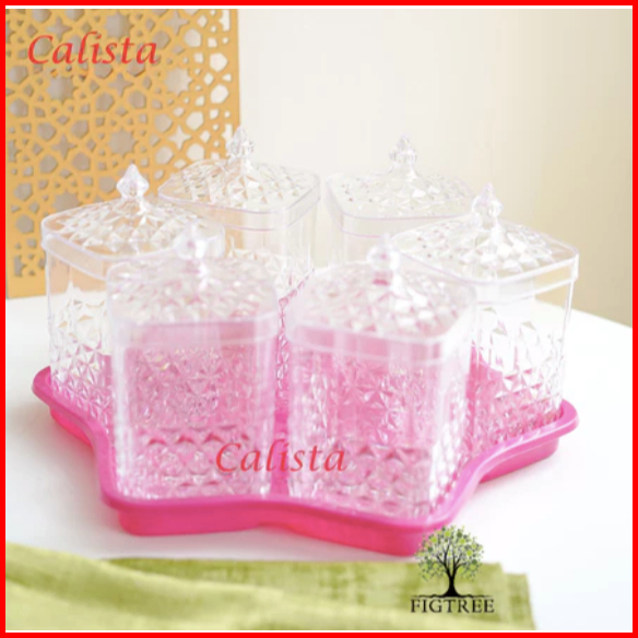 Isty Toples Calista Belimbing Kristal Isi 6 Set Toples Acrylic 1000 Ml Nampan Toples Lebaran Akrilik Toples Kue Hari Ray